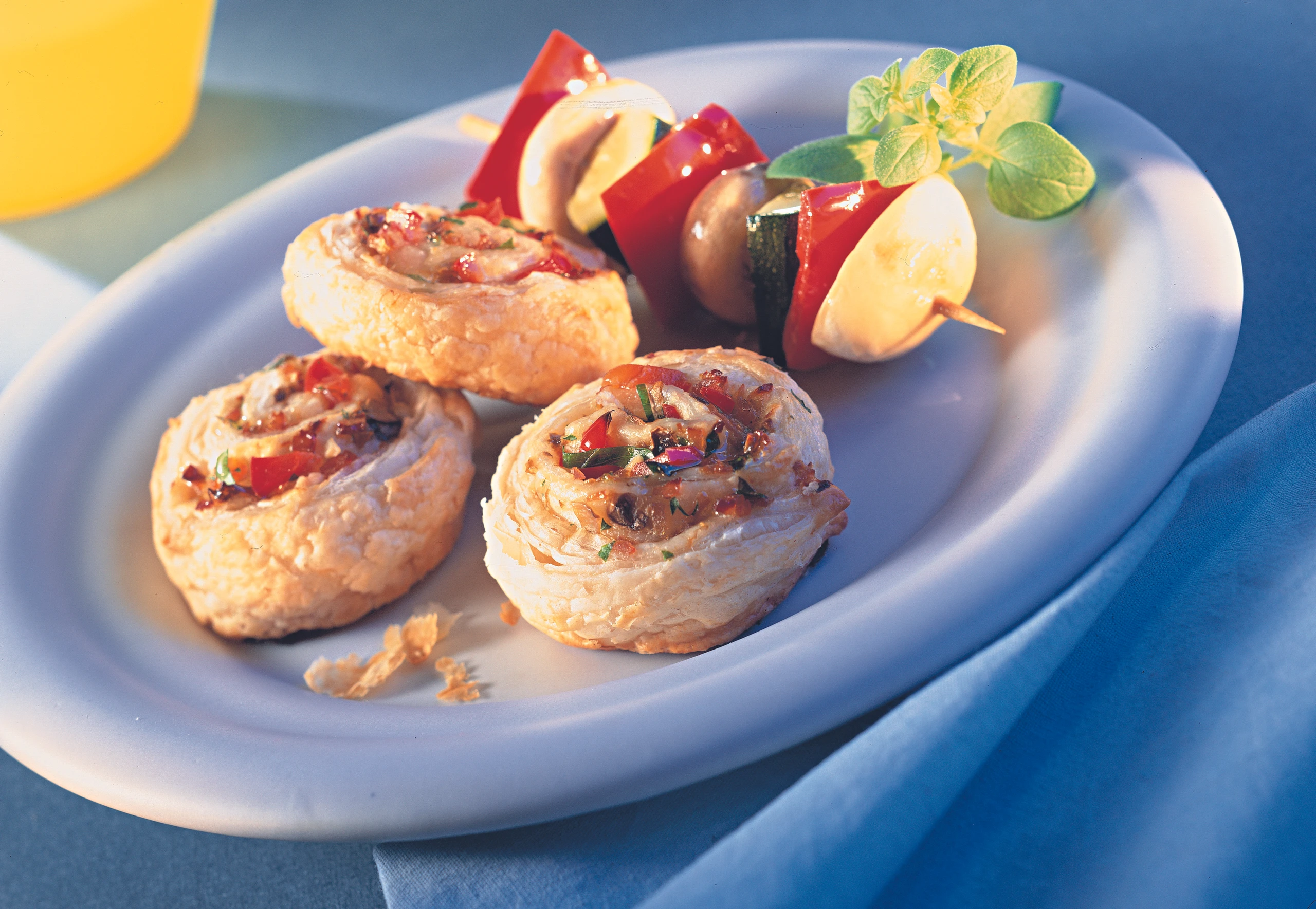 Gemüse-Schinkenschnecken mit Gemüse-Spießen