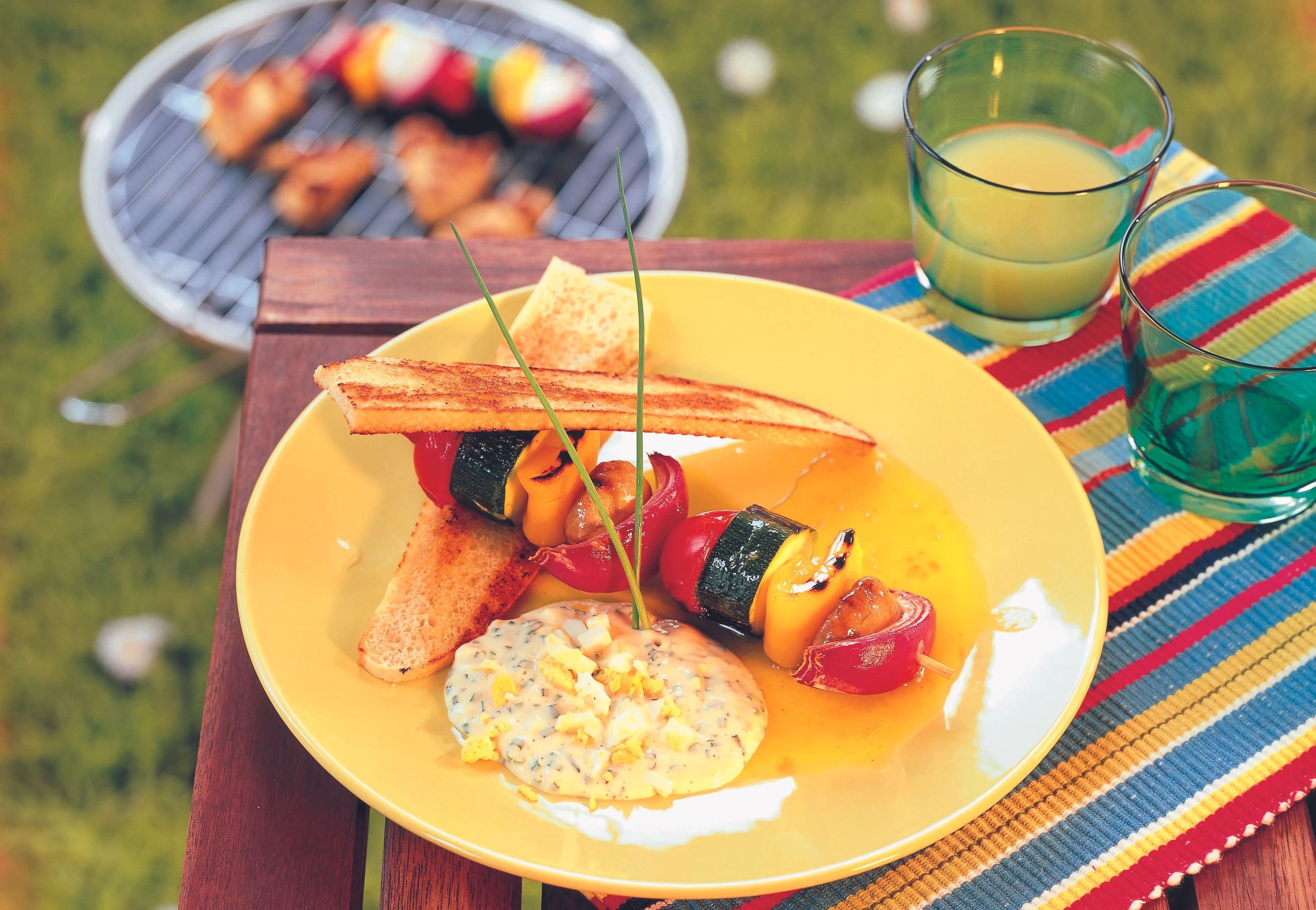 Gegrillte Gemüsespieße mit Ananasöl und Schnittlauchsauce