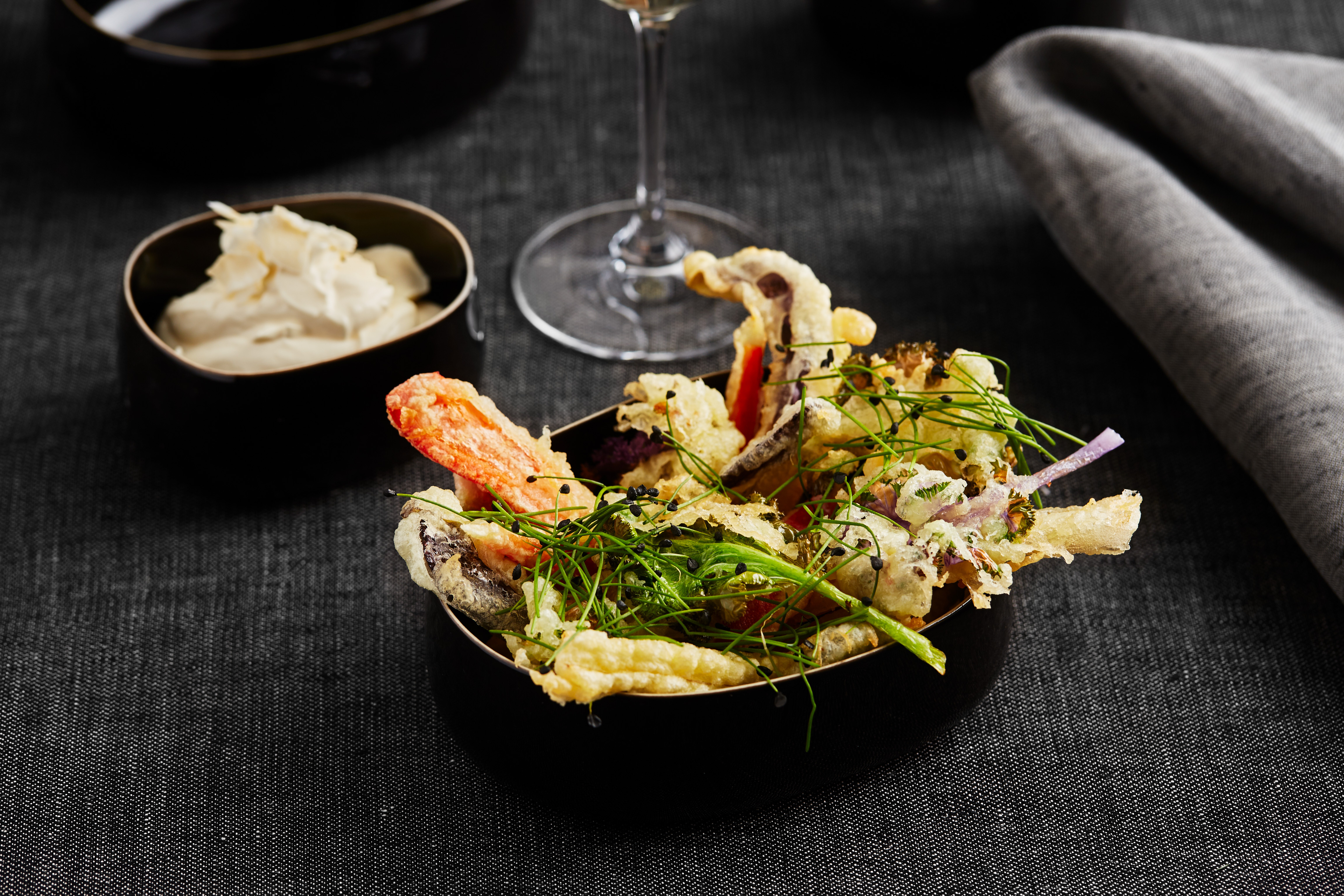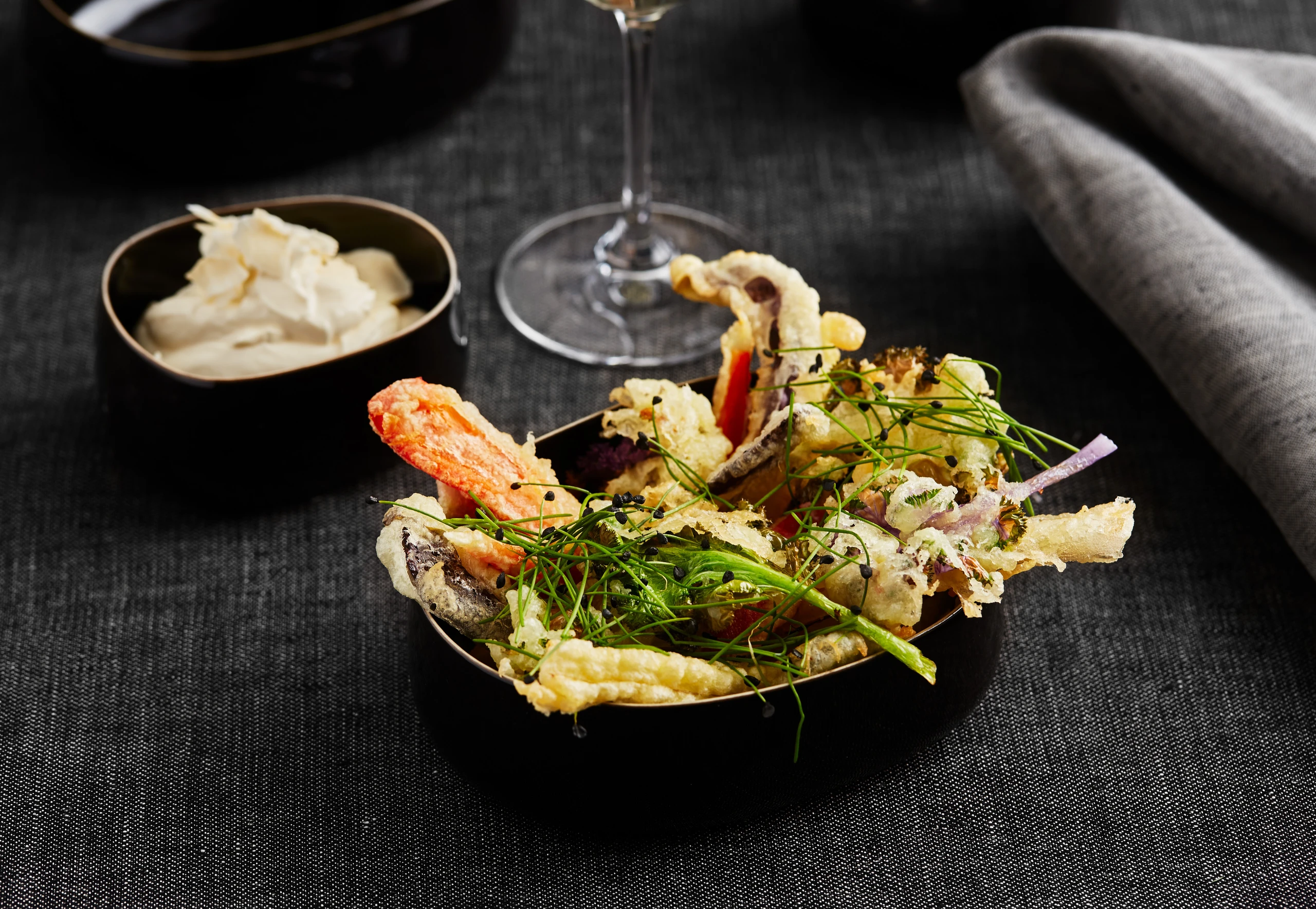 Ca. 3 Finger hoch Öl erhitzen. Gemüse salzen, pfeffern und in den eiskalten Teig tauchen. Im heißen Öl knusprig backen. Herausheben, abtropfen lassen und warm stellen. Übriges Gemüse backen, anrichten, mit Knoblauchkresse bestreuen und mit der Sauce servieren.