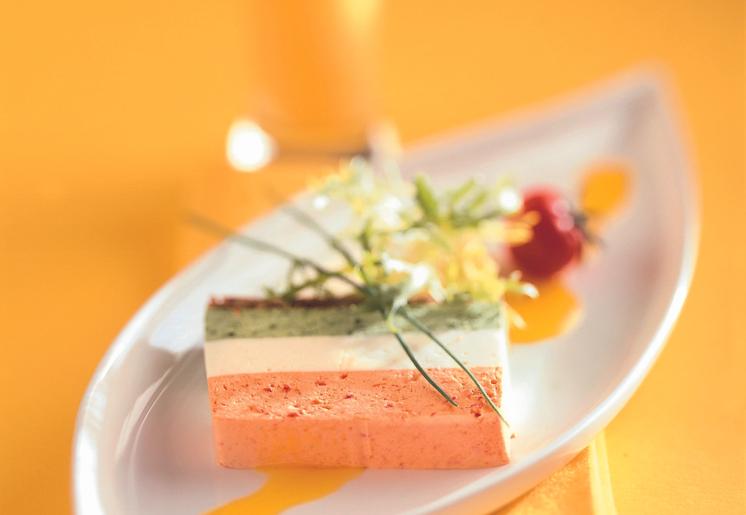 Gemüse-Terrine „Tricolore“ mit Safransauce