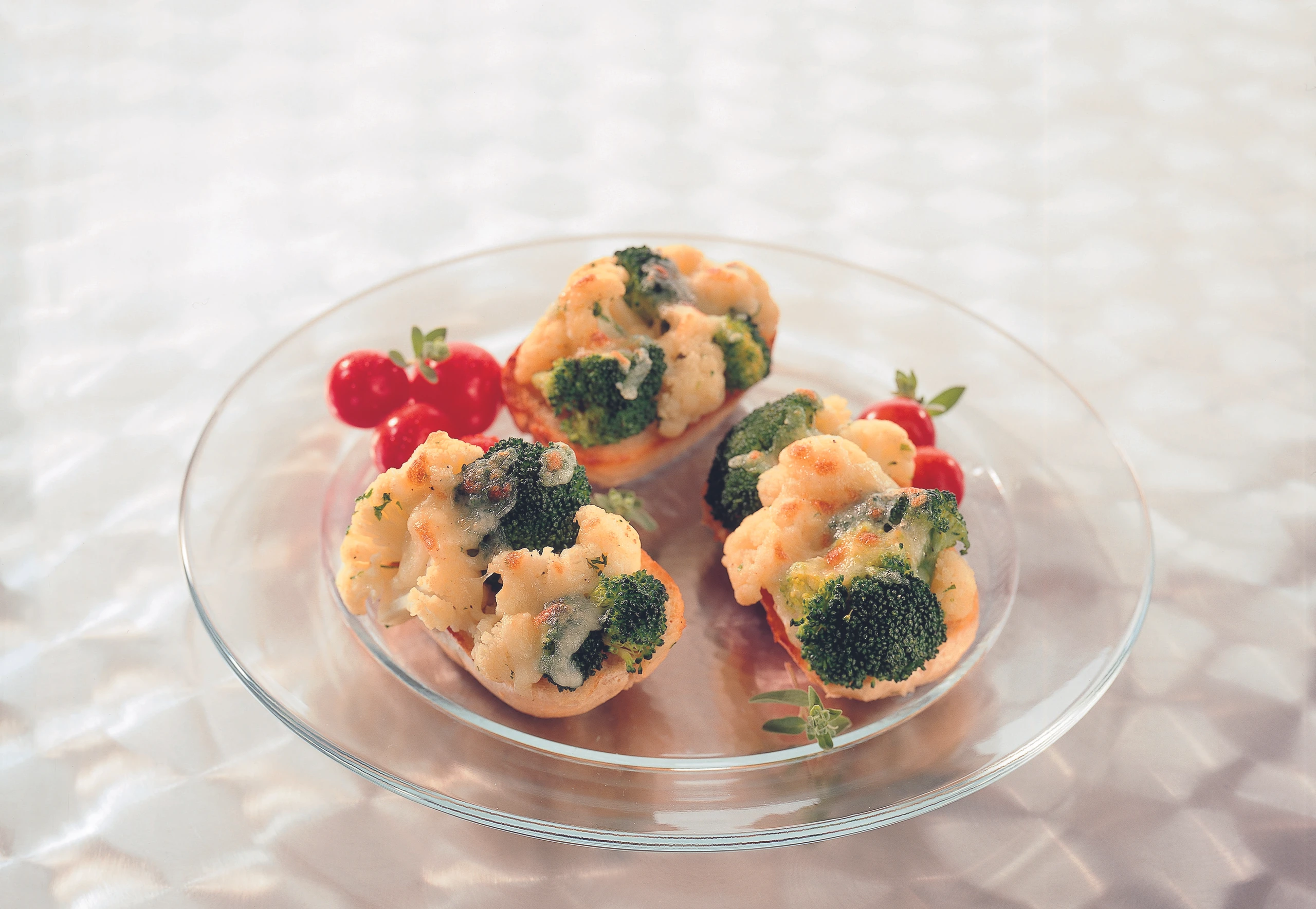 Während die Weckerl backen, Karfiol und Brokkoli in möglichst gleiche, kleine Röschen teilen, im Salzwasser bissfest kochen, kalt abschrecken und gut abtropfen lassen. Mozzarella abtropfen lassen und grob raspeln.