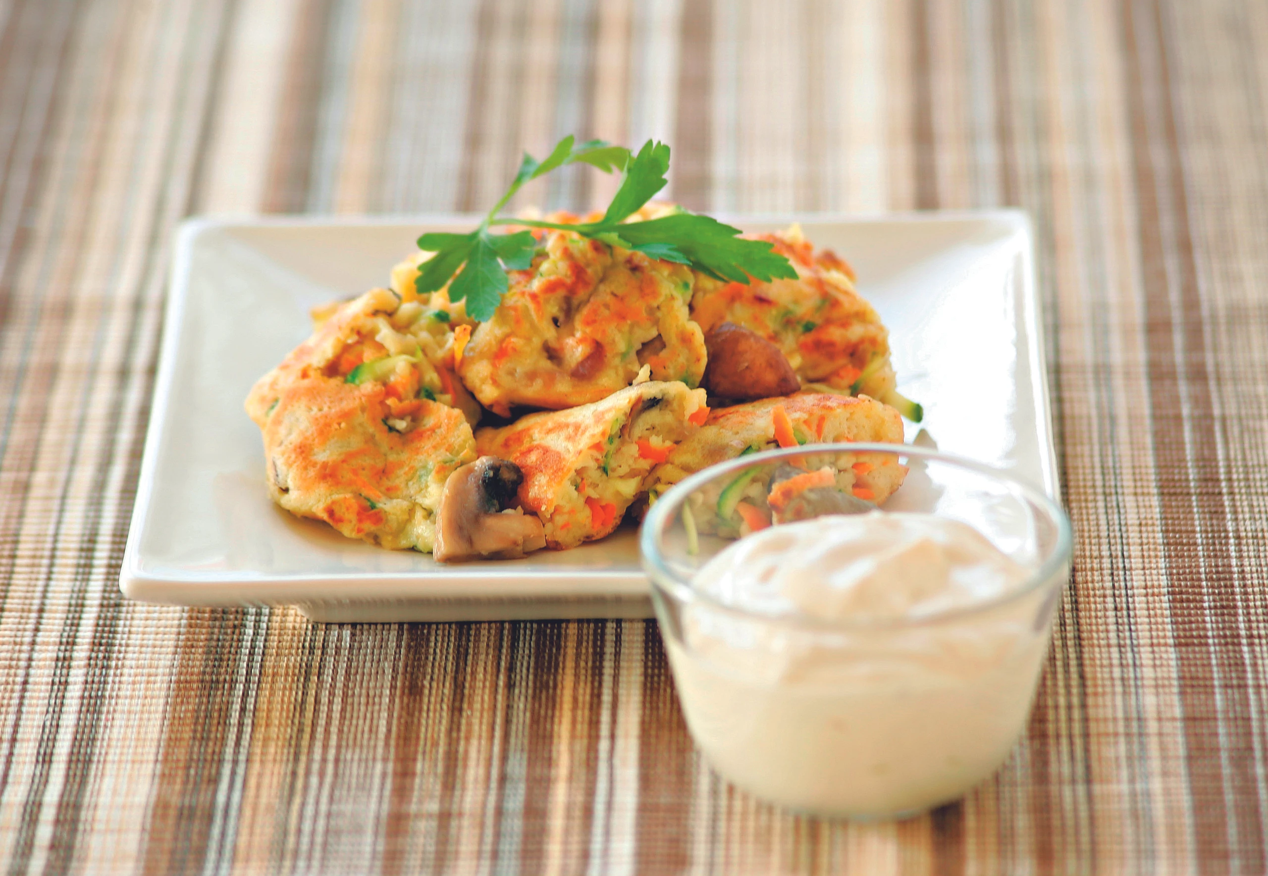 Gemüseschmarren mit Champignons und Knoblauchsauce
