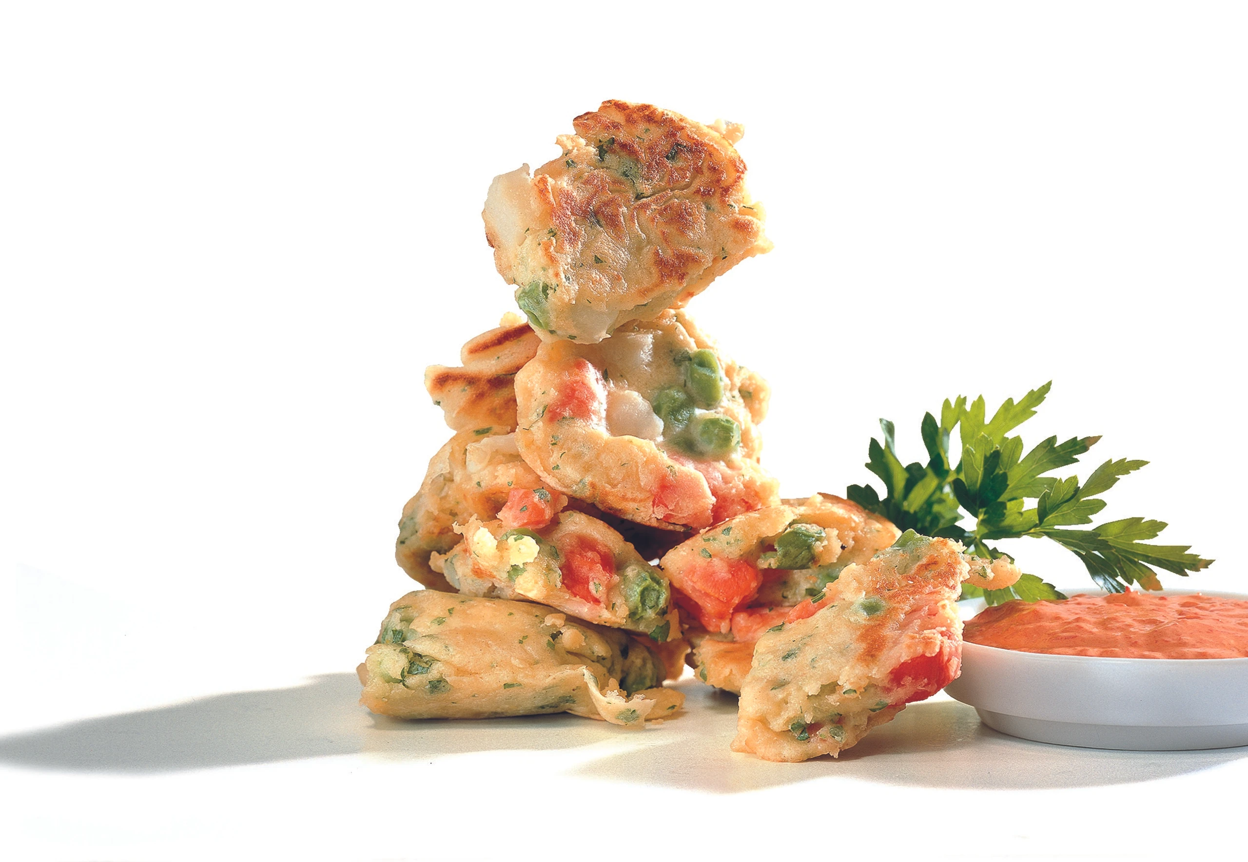 Eier in Dotter und Klar trennen. Milch in eine Schüssel gießen und mit dem Mehl glatt rühren. Dotter und Parmesan einrühren, mit Salz und Pfeffer würzen. Eiklar zu cremigem Schnee schlagen. Zuerst Gemüse, dann den Schnee unter den Teig heben.