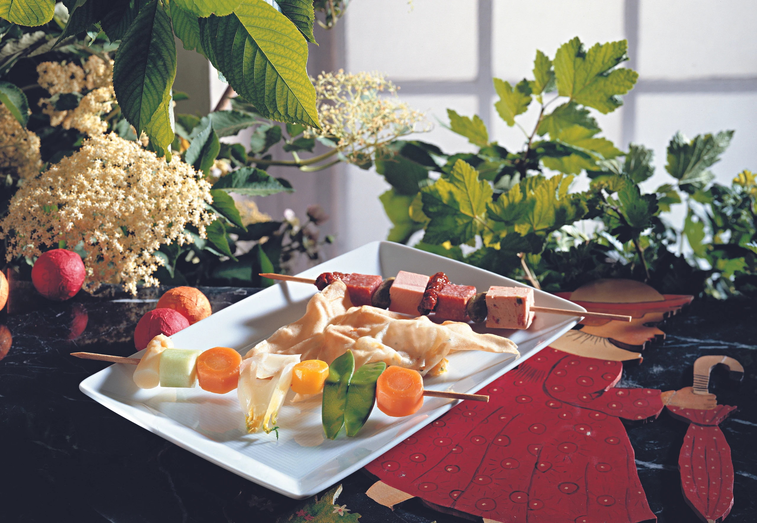 Gemüsespieße, Gemüsetascherl und Wurstspieße