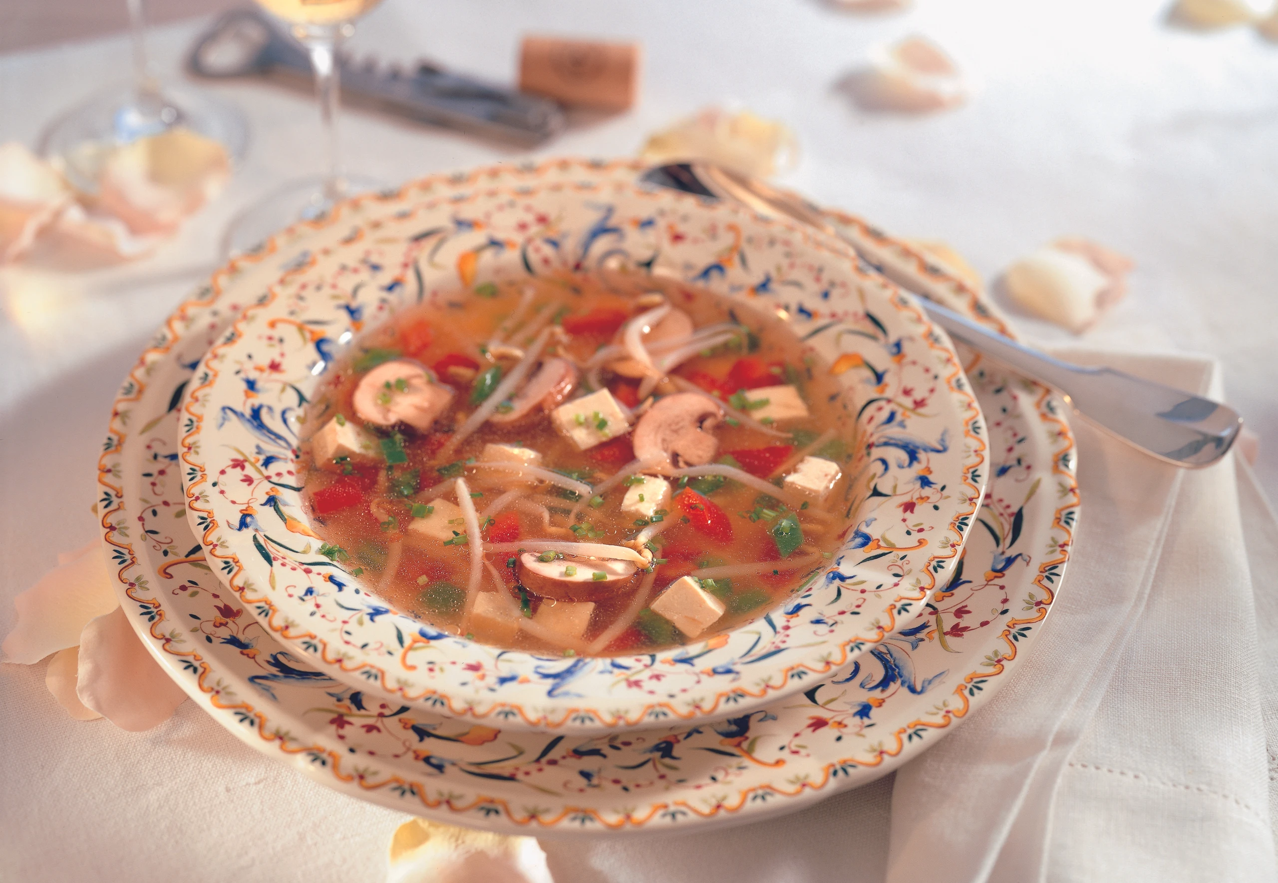 Asiatische Gemüsesuppe mit Pilzen und Tofu