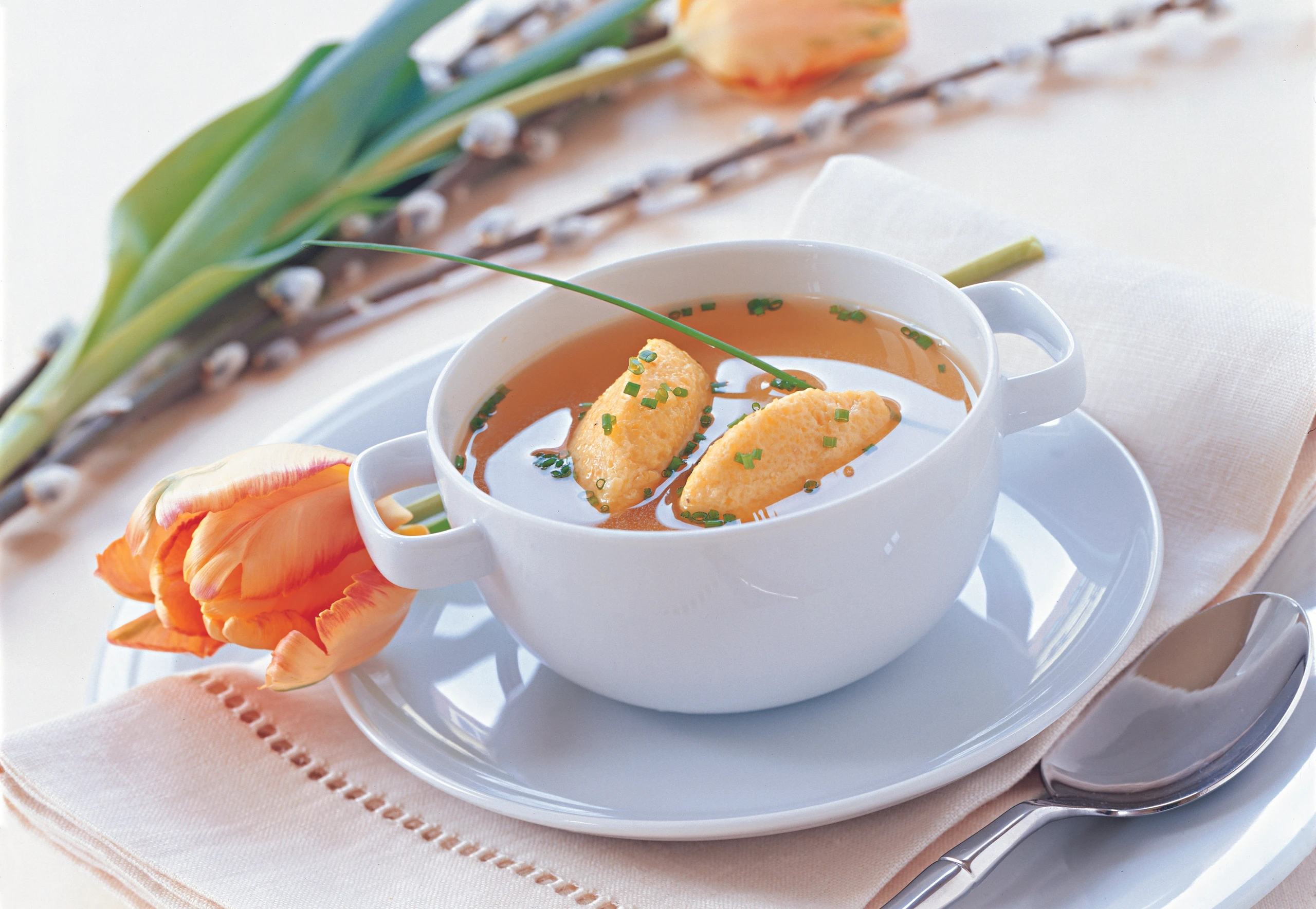 Schnittlauch schneiden. Suppe mit den Nockerln anrichten und mit Schnittlauch bestreuen.