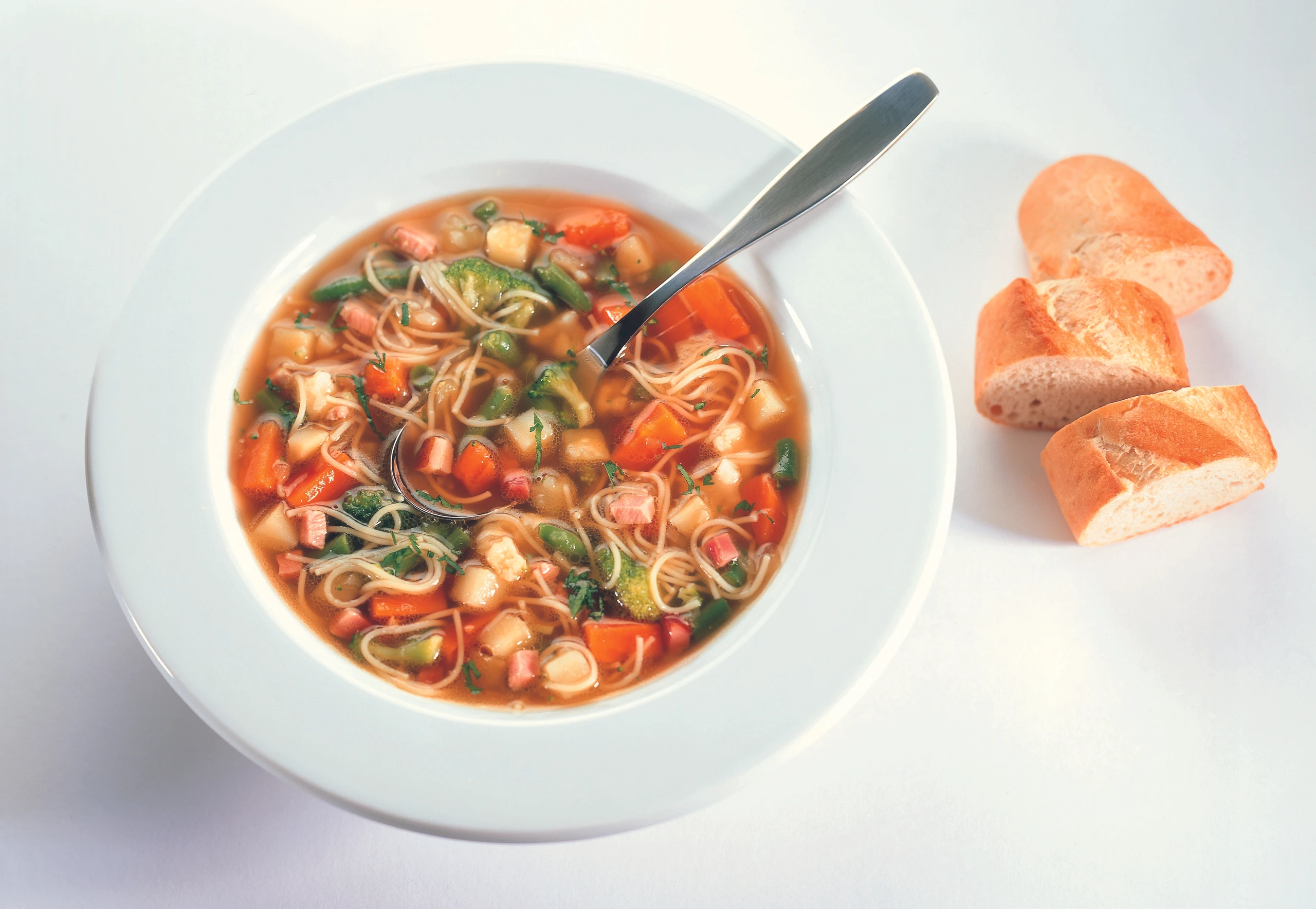 Schnelle Gemüsesuppe mit Speck und Petersil