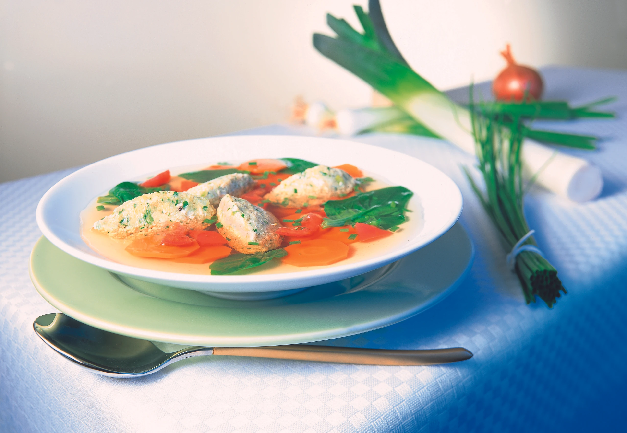 Gemüsesuppe mit Tofu-Kräuter-Nockerln