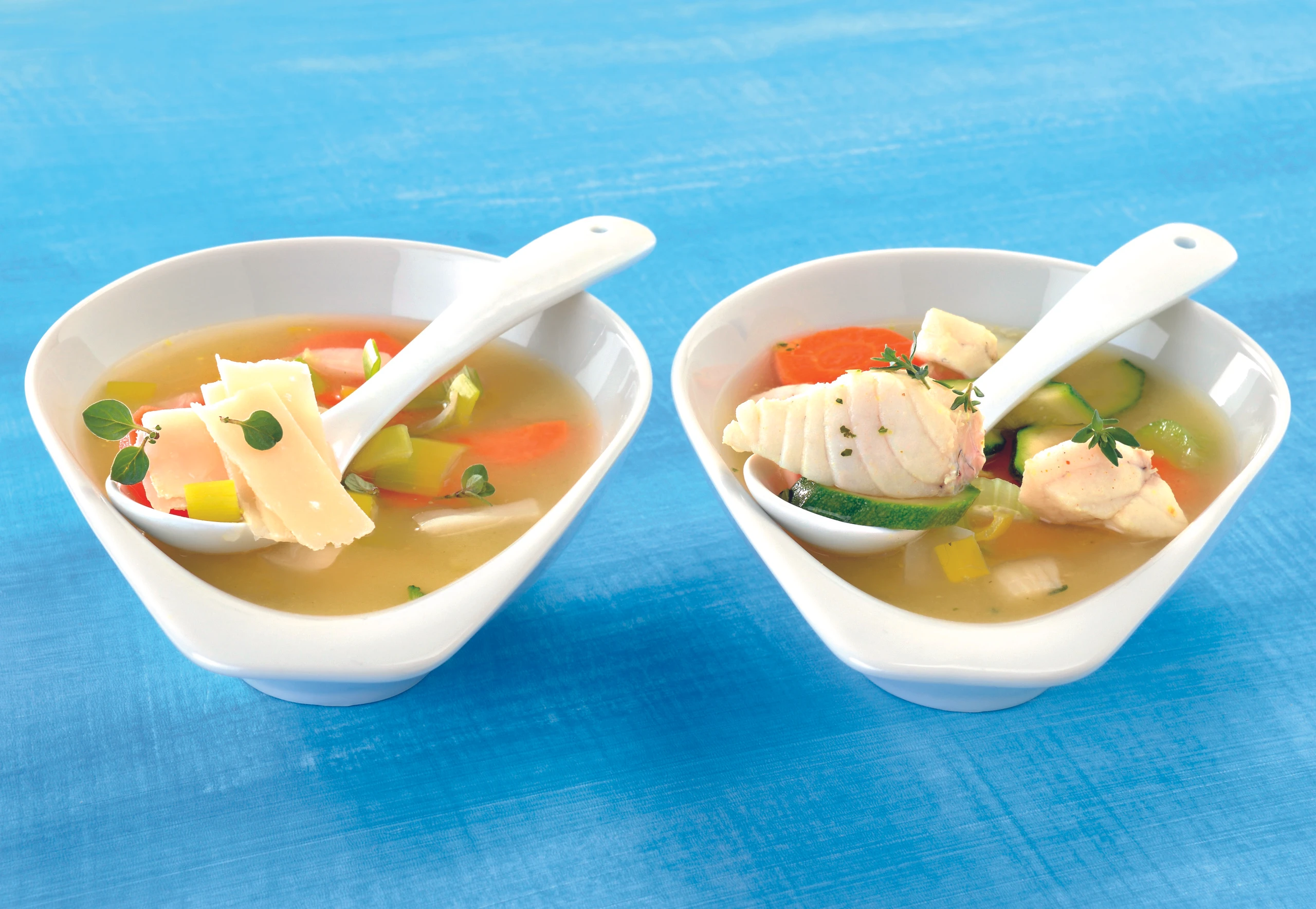 Lorbeerblatt entfernen, Gemüsetopf pürieren (Mixstab) und aufkochen. Karotte, Sellerie und Fenchel zugeben, zudecken und ca. 6 Minuten leicht kochen.