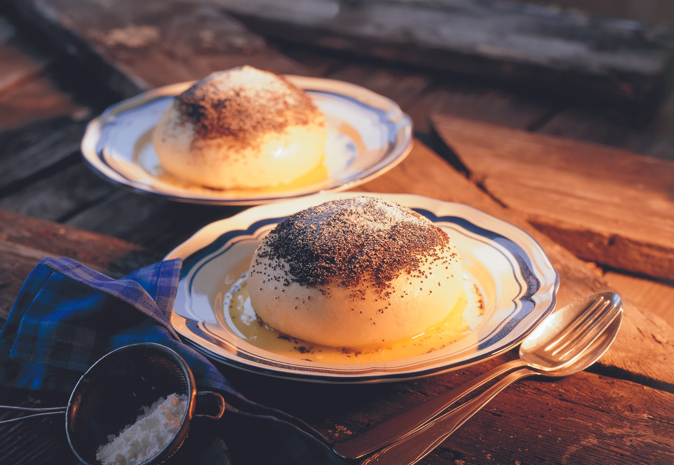 Knödel in reichlich kochendes, leicht gesalzenes Wasser legen, zudecken und bei schwacher Hitze ca. 20 Minuten gar ziehen lassen – die Knödel nach halber Garzeit wenden.
