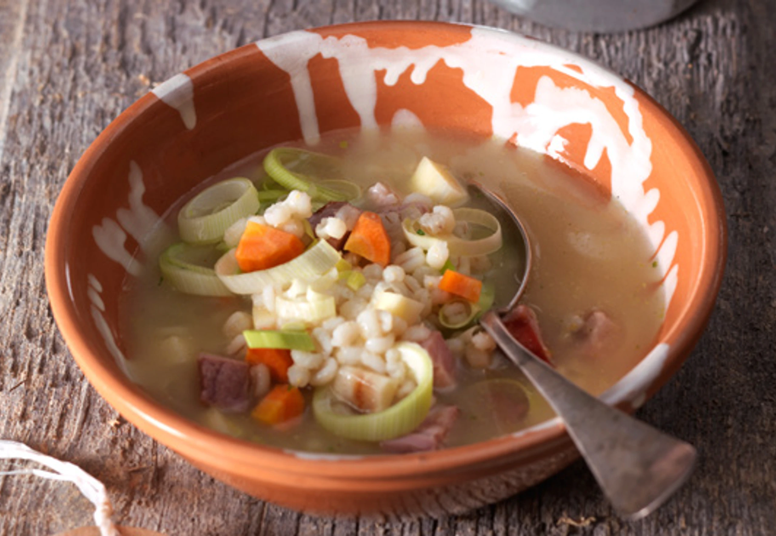 - Rollgerste abseihen, zur Suppe geben und weitere 5 Minuten kochen, eventuell nachwürzen.