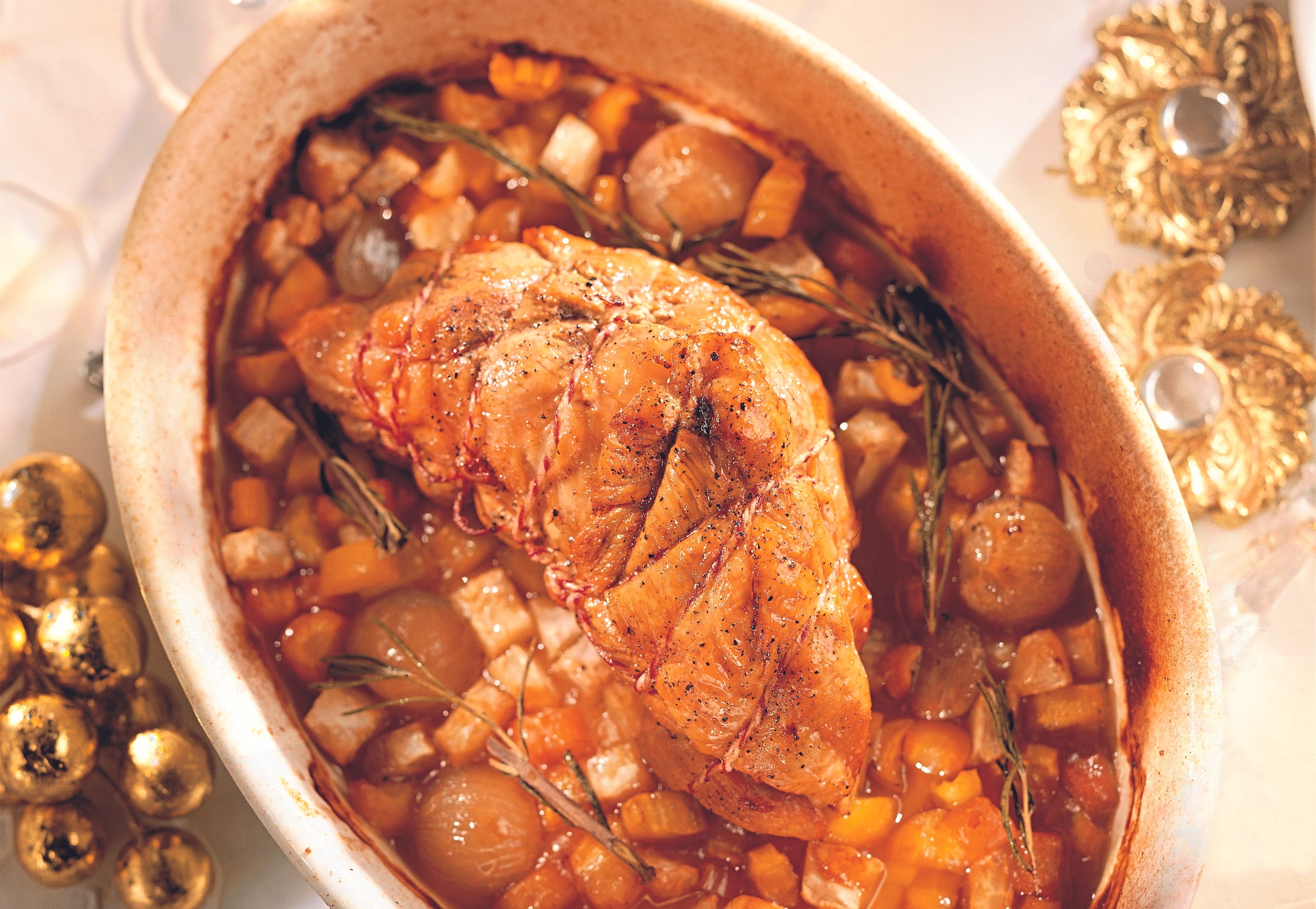 Geschmorte Kalbsschulter mit Rosmarin und Grießschnitten