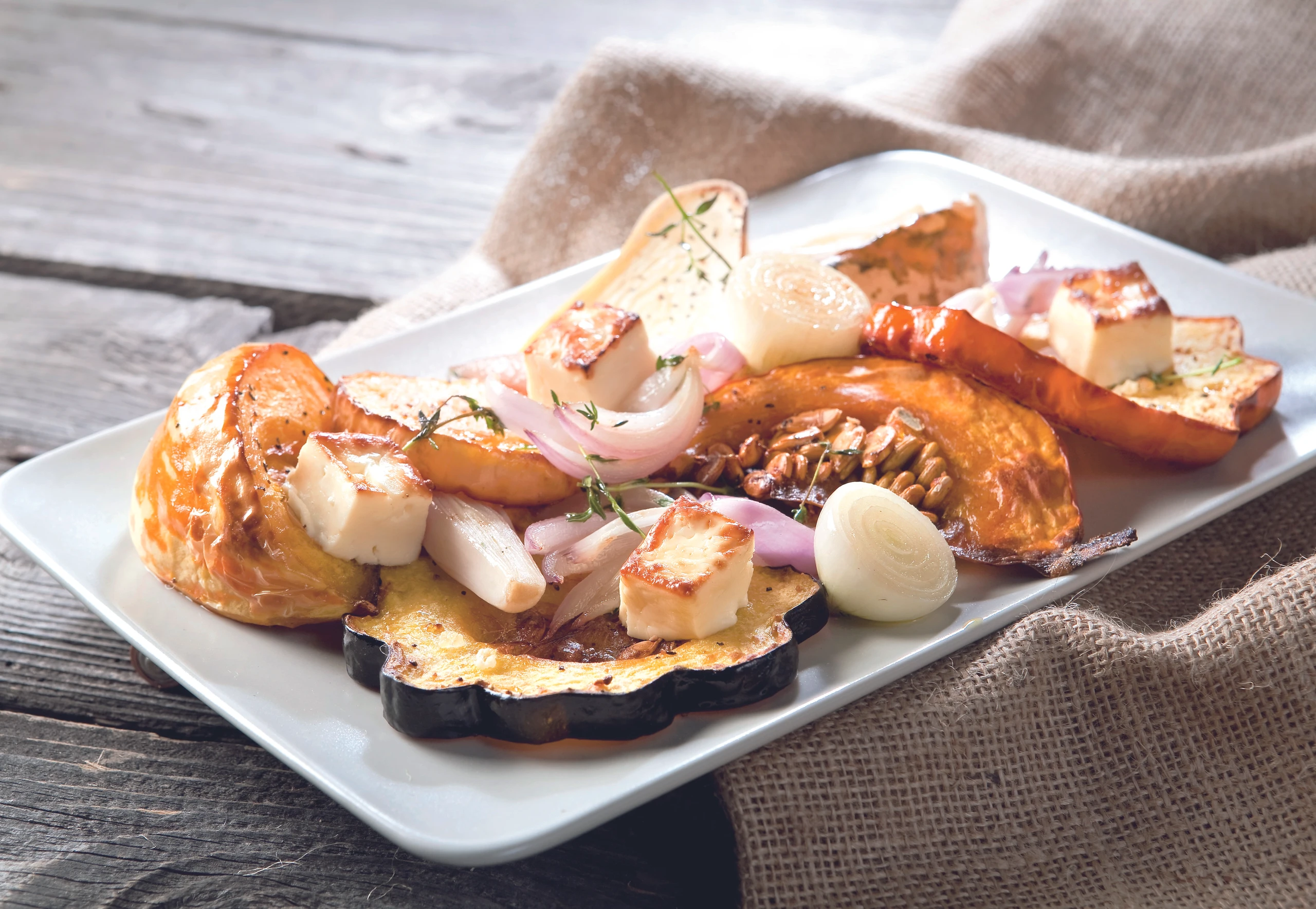 Geschmorte Kürbisse mit Schafkäse und Thymian