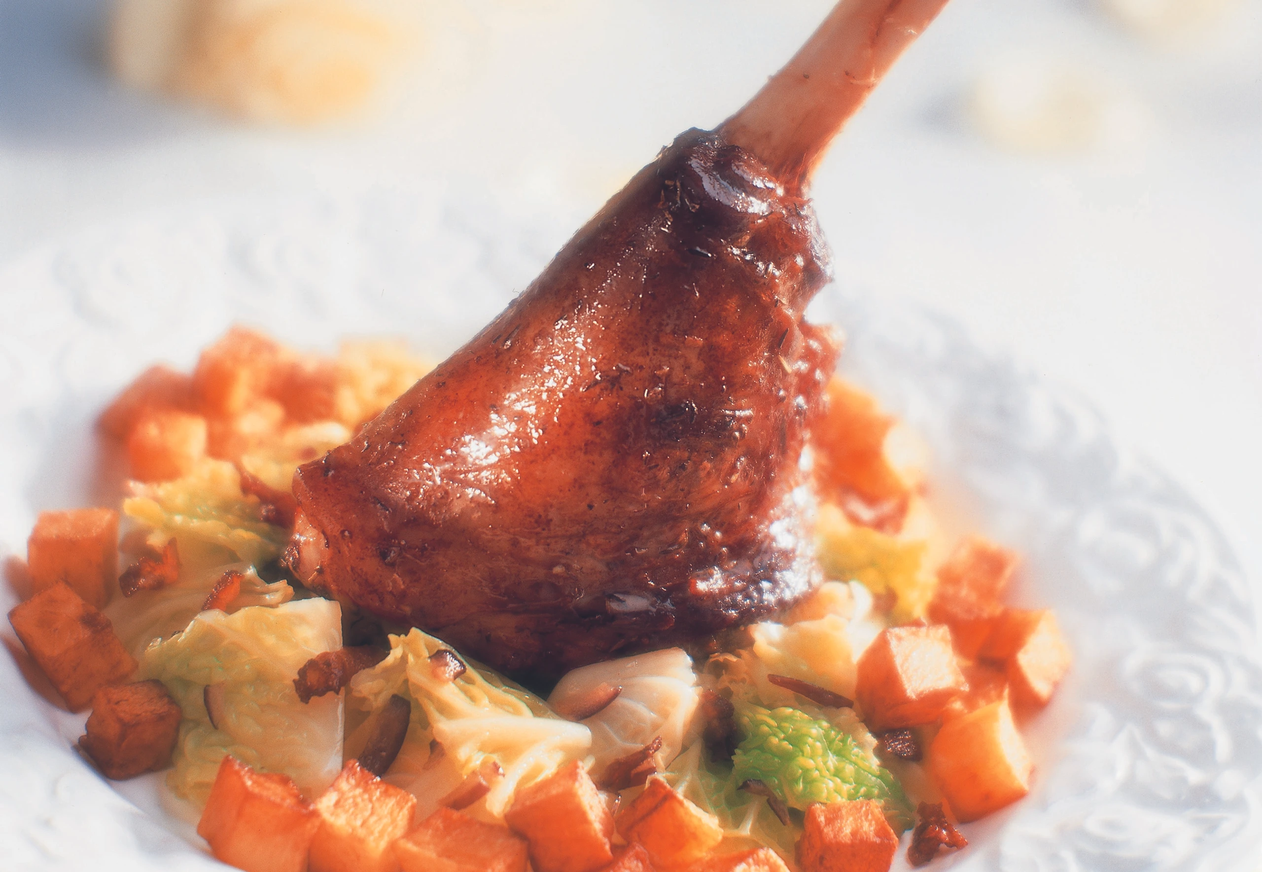 Geschmorte Lammstelzen mit Salbei und Kohl