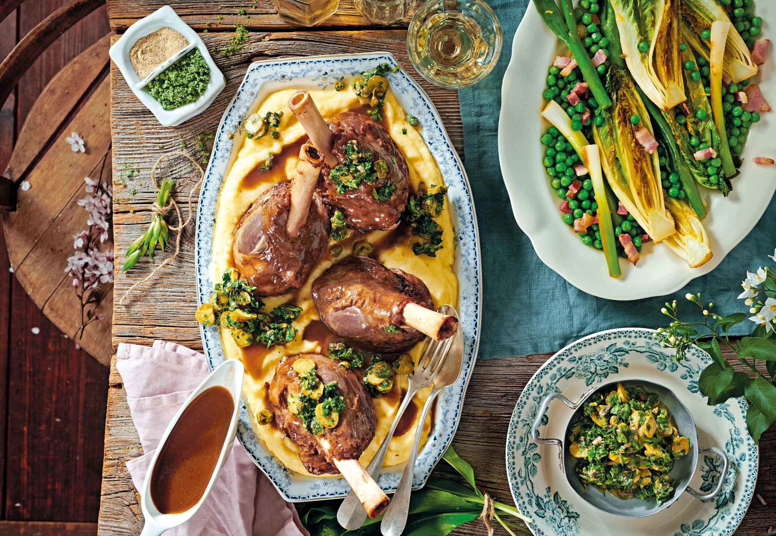 Geschmorte Lammstelzen mit Bärlauch-Gremolata