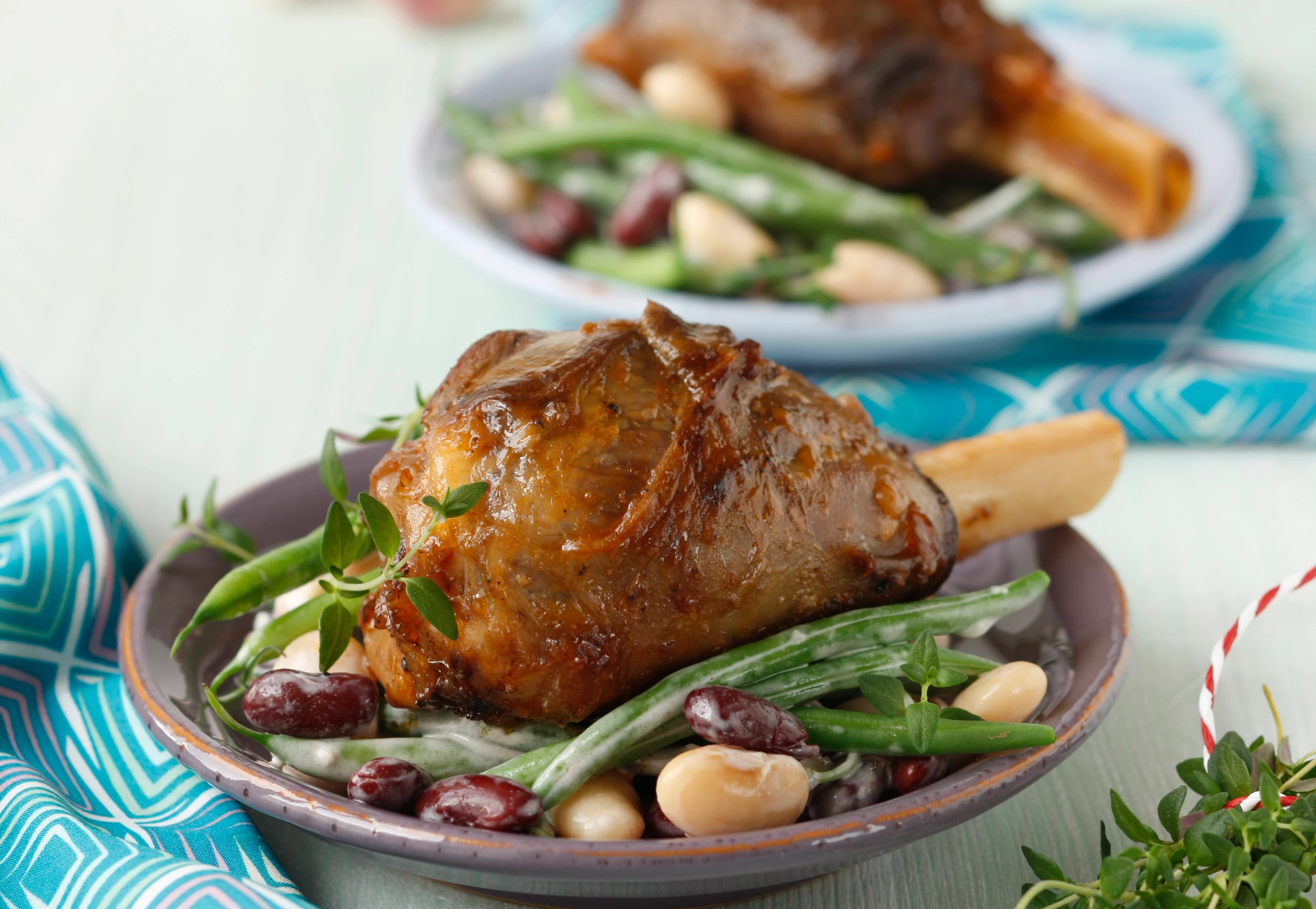 Geschmorte Lammstelzen mit cremigem Bohnengemüse