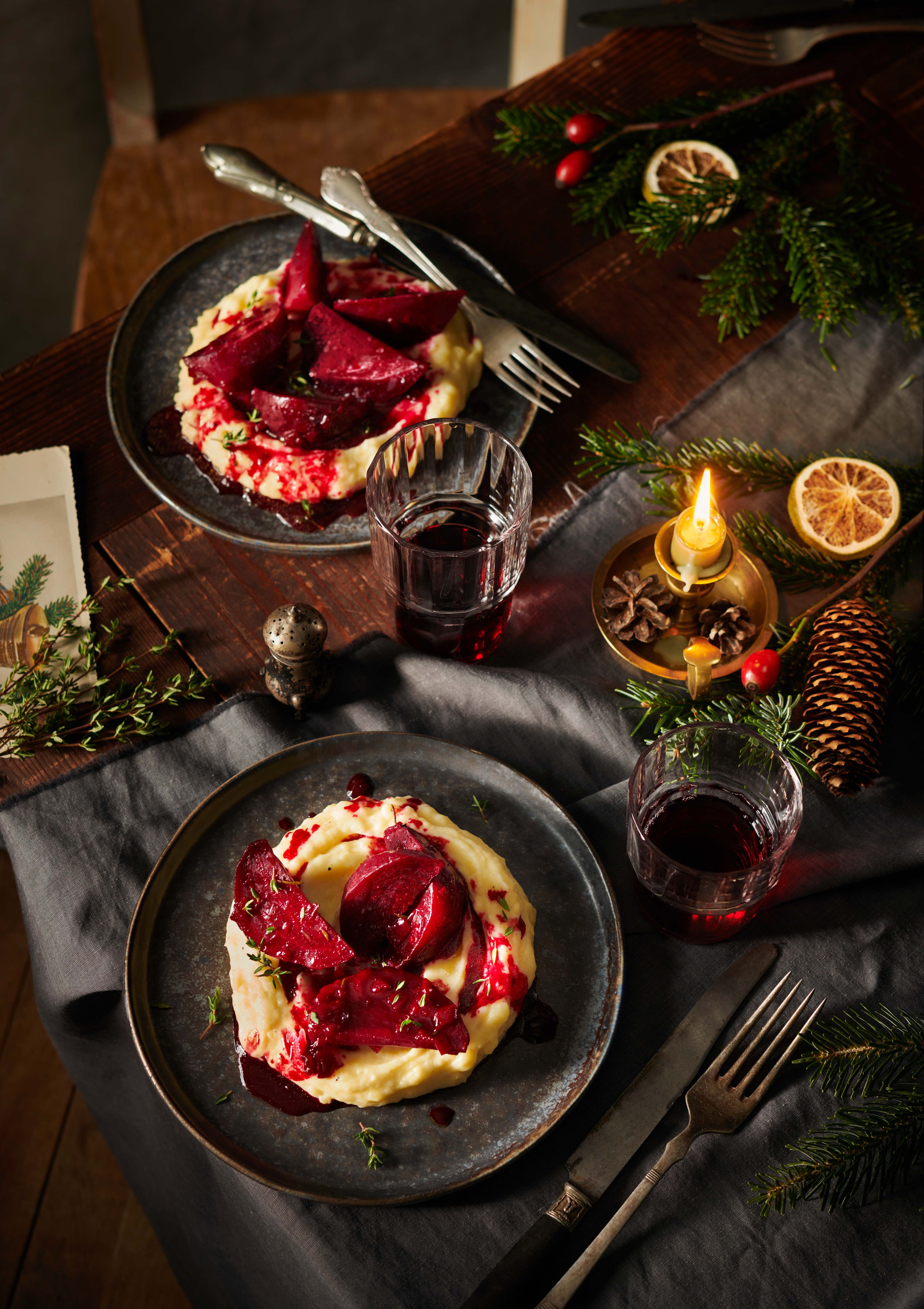 Geschmorte Rote Rüben mit Knoblauchpüree