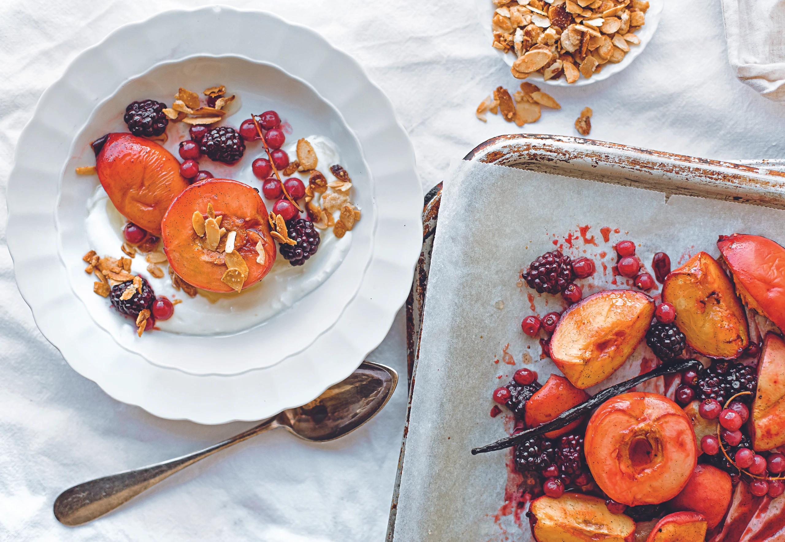 Geschmorte Sommerfrüchte mit Honig-Joghurt