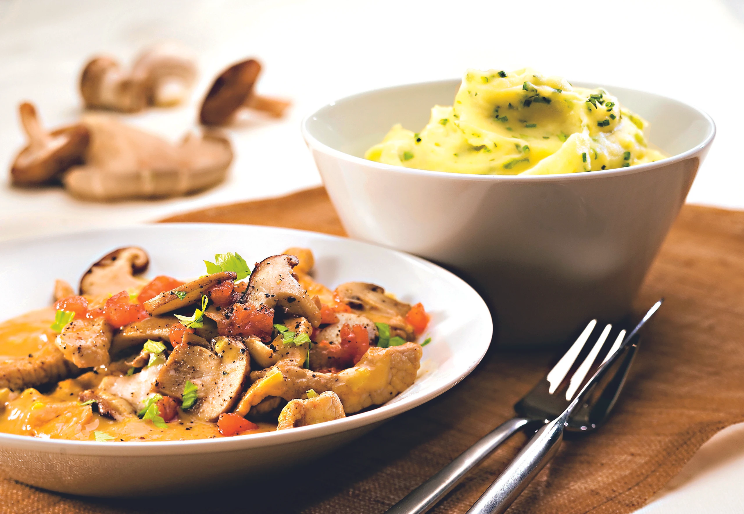 Geschnetzeltes mit Pilzen und Erdäpfelpüree