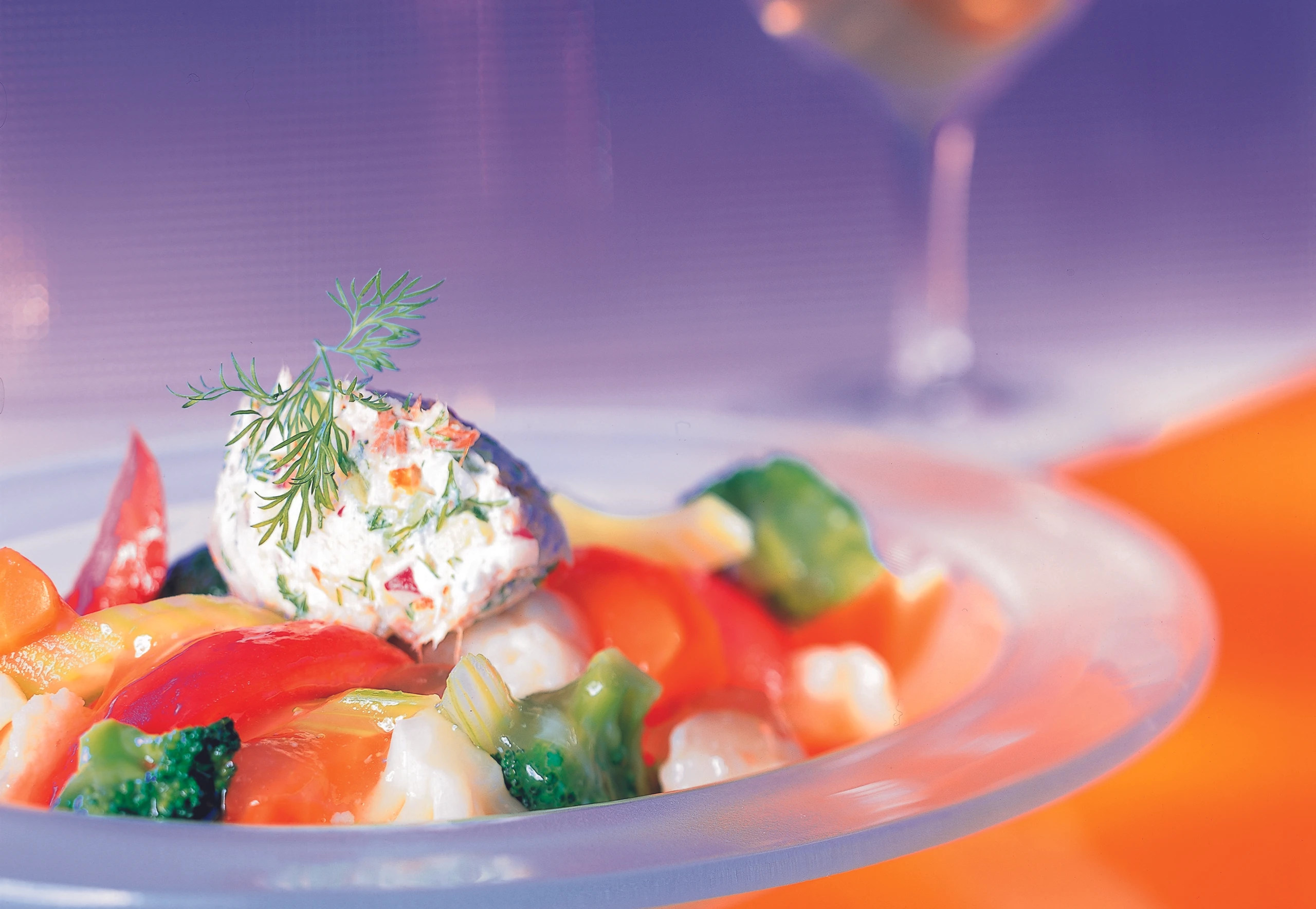 Gelatine in kaltem Wasser einweichen, ausdrücken und im Gemüsefond auflösen. Gemüse unterrühren und im Kühlschrank leicht anziehen lassen (ca. 2 Stunden).