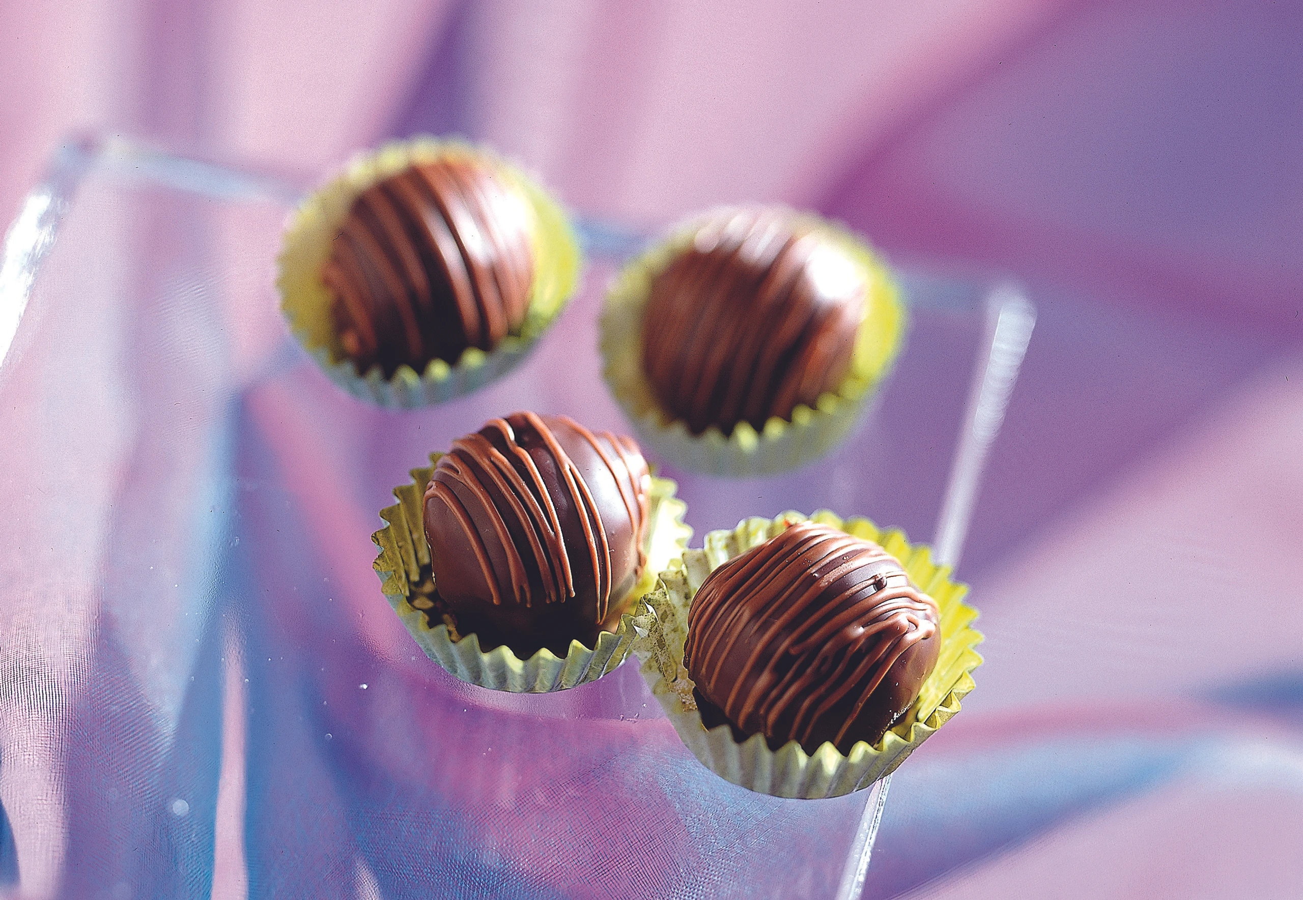 Dunkle Kuvertüre temperieren. Kugeln in die Kuvertüre tauchen, abtropfen und auf Backpapier trocknen lassen.