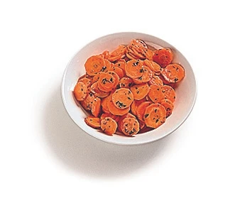 Karotten putzen schälen und in ca. 3 mm dicke Scheiben schneiden. Zucker in Butter anschwitzen mit wenig Mineralwasser aufgießen. Karotten zugeben nach und nach das Mineralwasser zugießen und die Karotten bissfest garen.