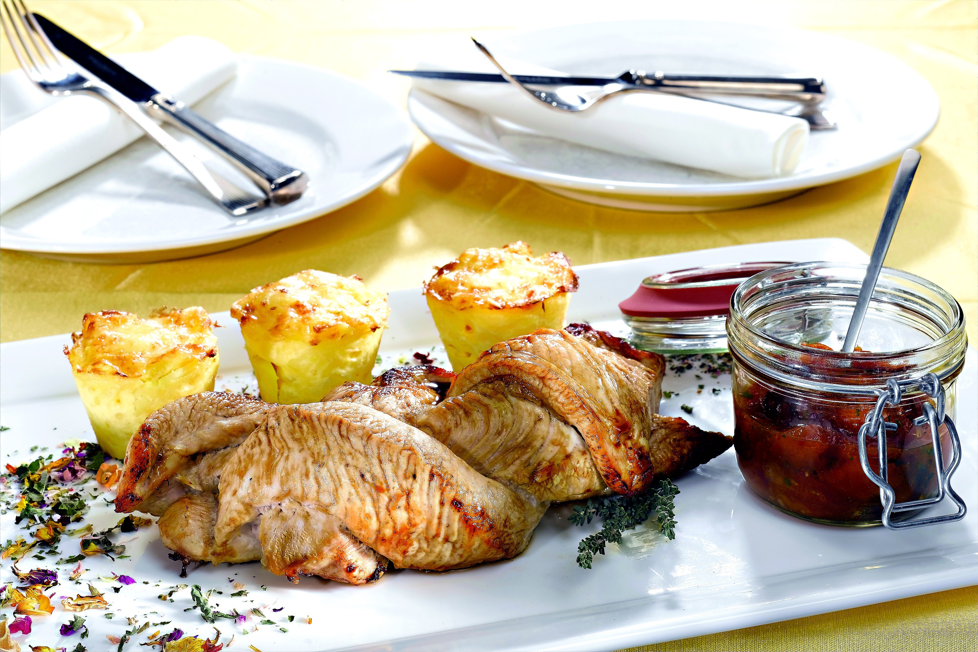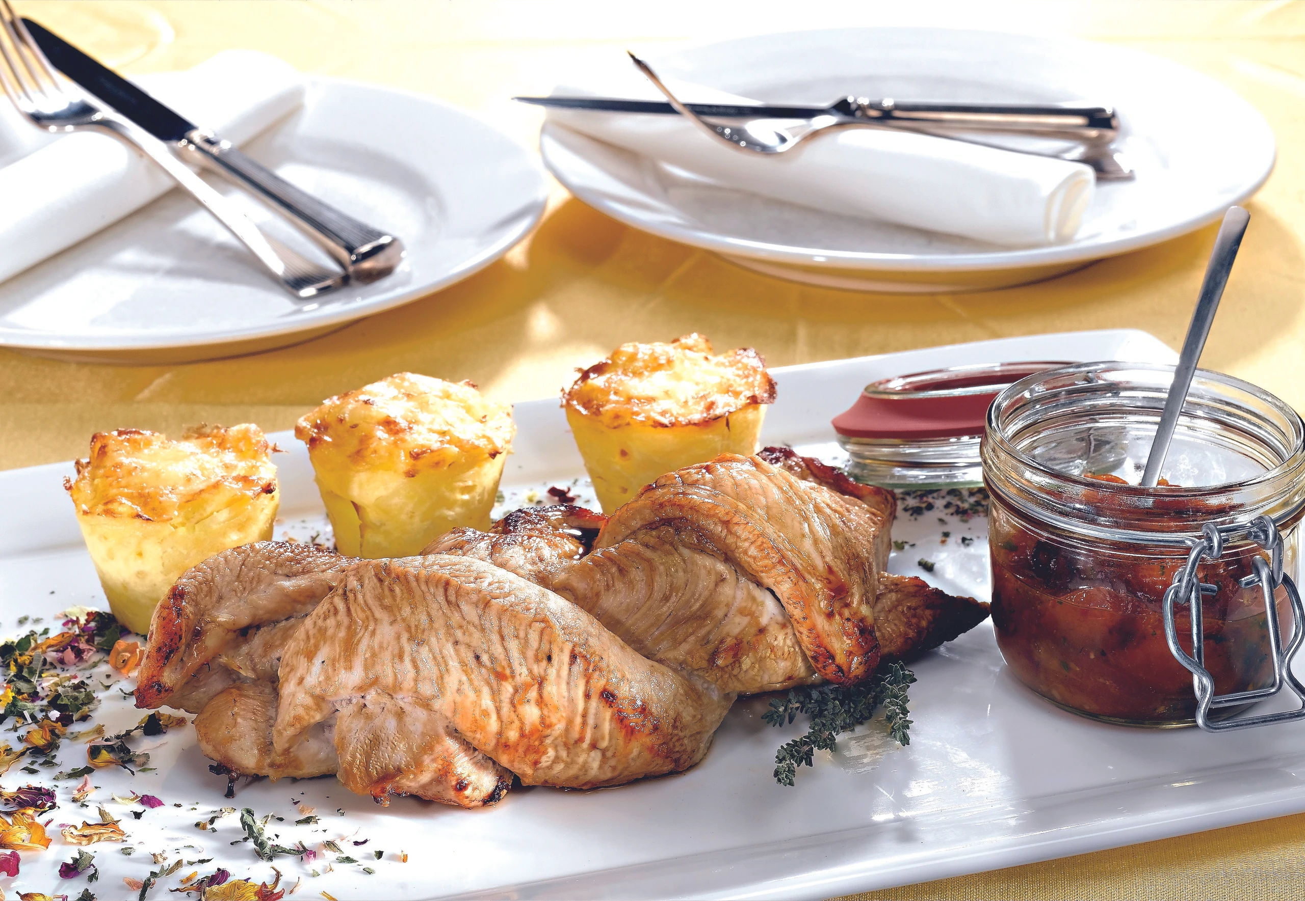 Glacierter Truthahnzopf mit Zitronen-Erdäpfeln
