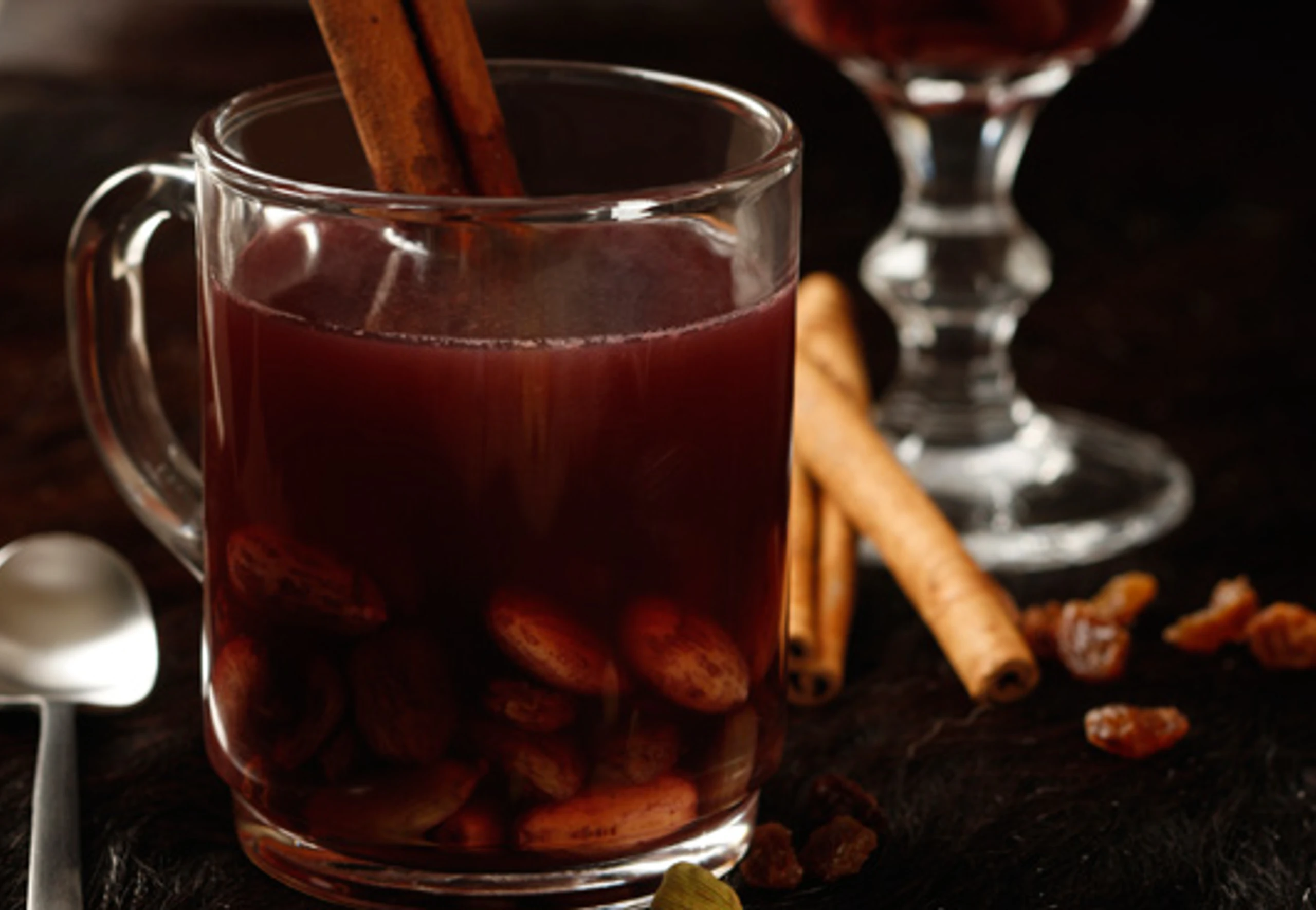 Wein mit Gewürzen und Zucker erhitzen. Wodka zugießen, erhitzen aber nicht kochen lassen.