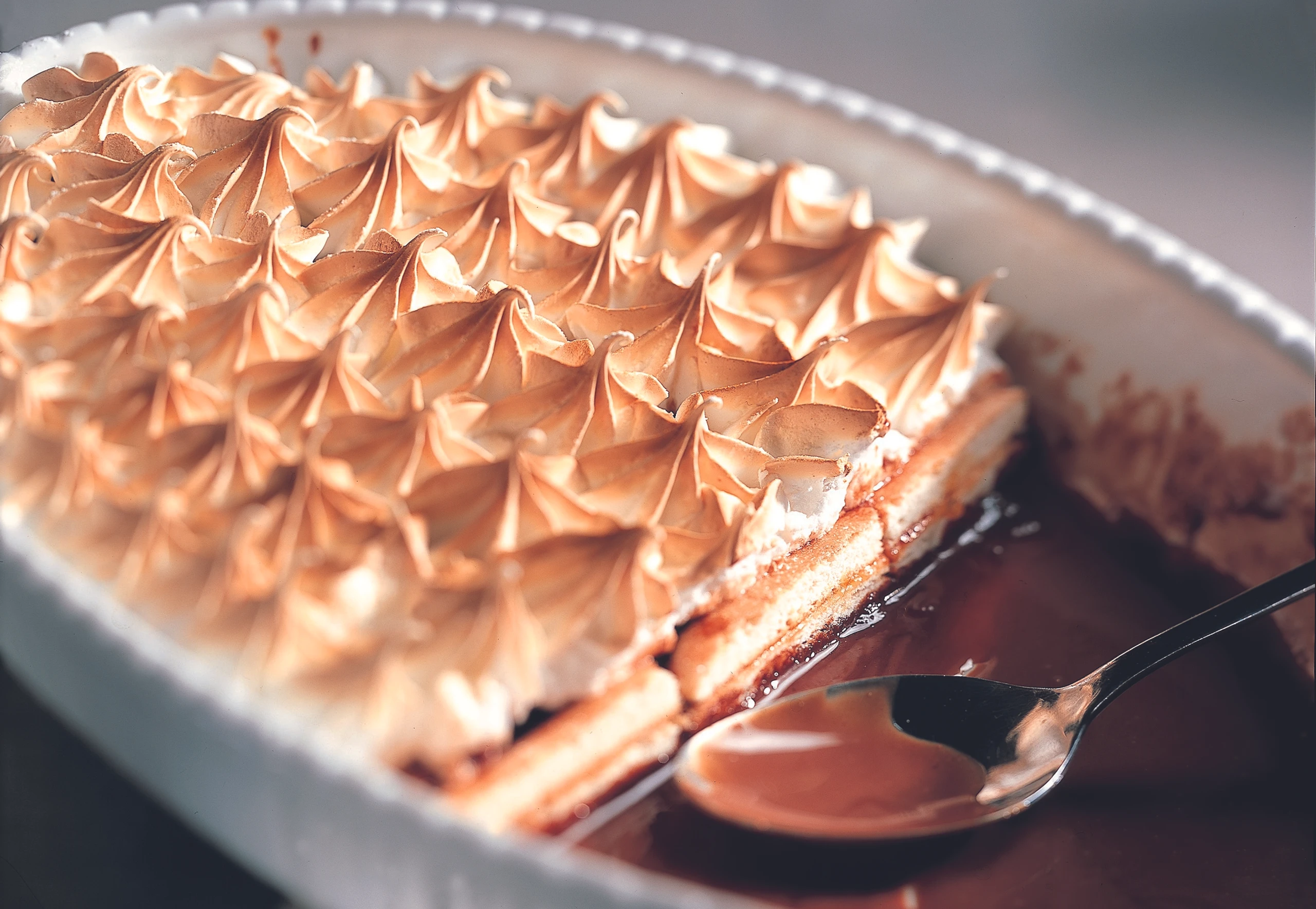 Eine Auflaufform (Inhalt 1 1/2 l) mit Butter ausstreichen, die Biskotten knapp nebeneinander einschichten und mit der Schokoladesauce übergießen.