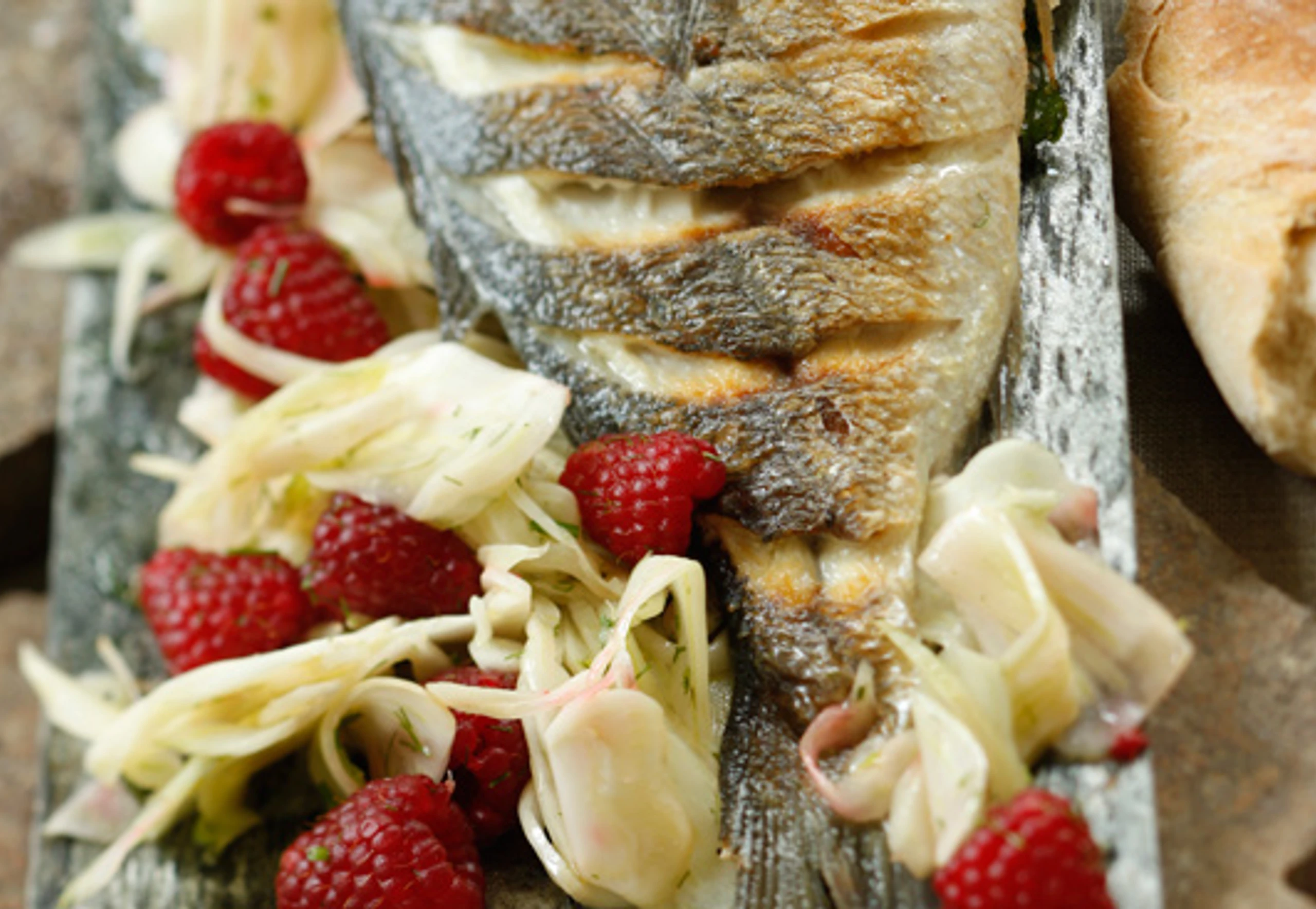 - Limettensaft, Vanillemark und 1 Prise Pfeffer vermischen, 4 EL Öl einrühren. Fenchel untermischen und kurz ziehen lassen. Zucker in einer Pfanne bis zur leichten Braunfärbung erhitzen, mit Portwein und Orangensaft ablöschen und aufkochen. Sauce vom Herd nehmen, Fenchel, Beeren und Fenchelgrün zugeben und behutsam vermischen.