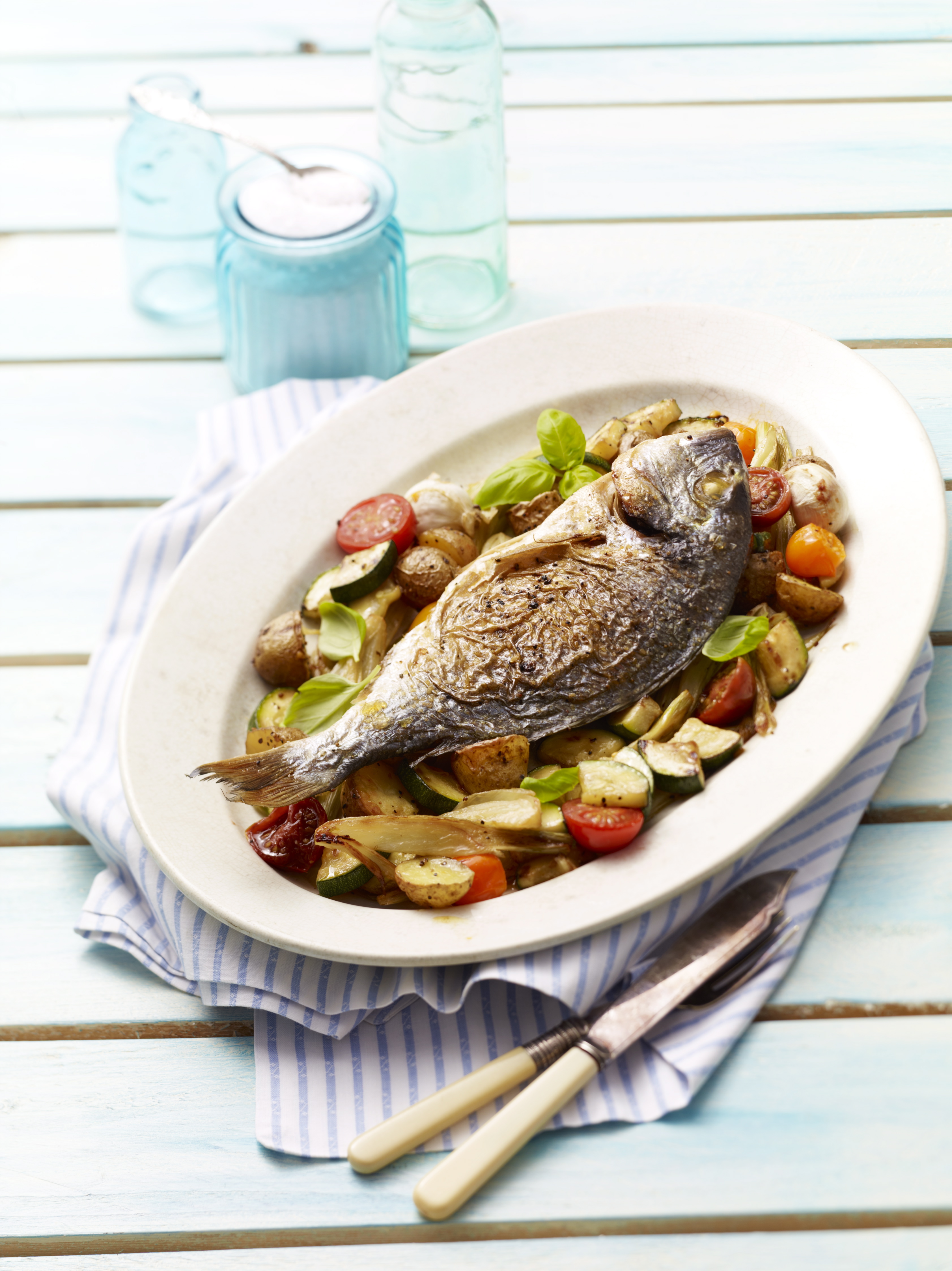 - Brassen filetieren und mit dem Gemüse servieren.