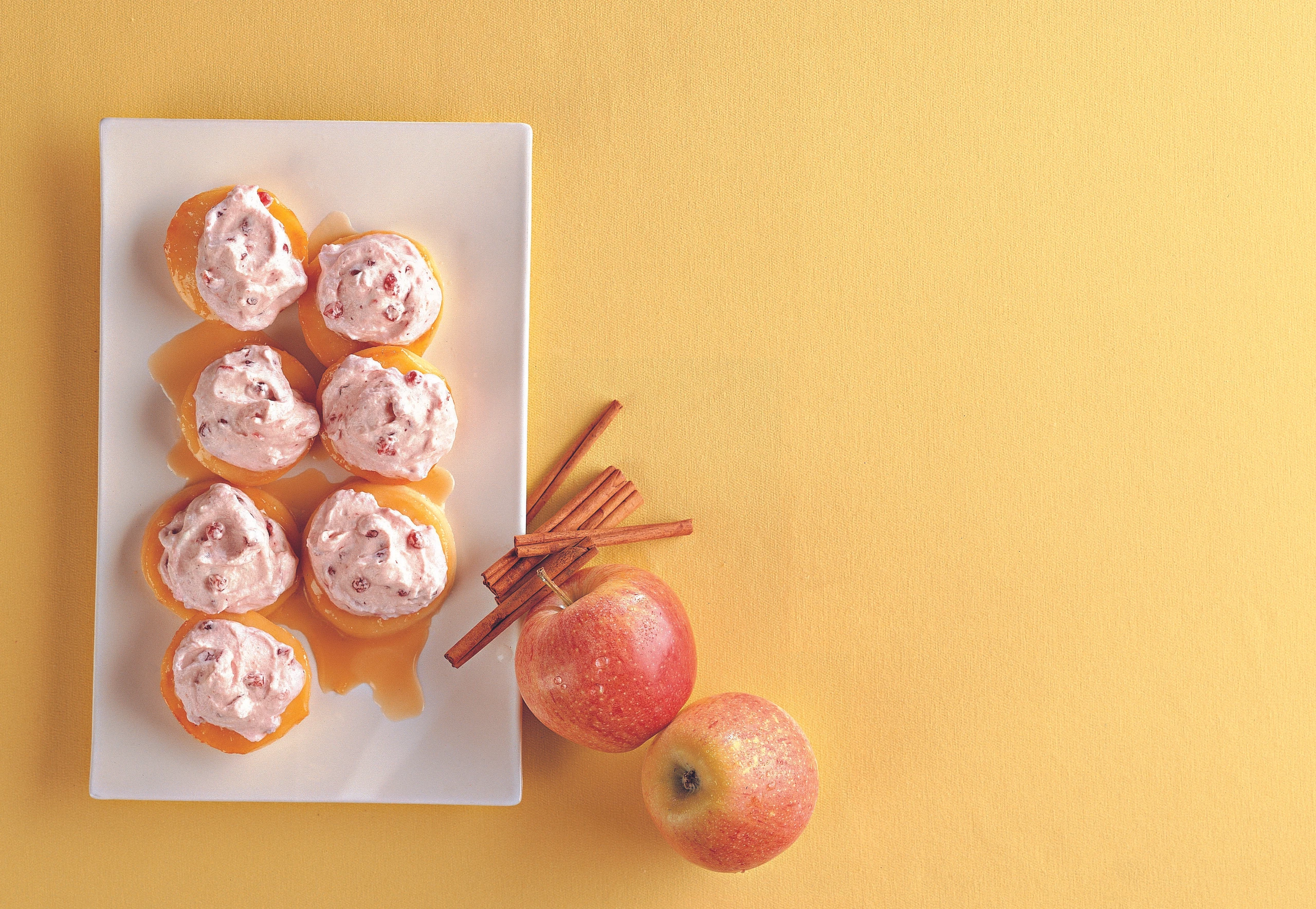 - Grantenschleck auf den Apfelscheiben verteilen und mit Zimt bestreut servieren.