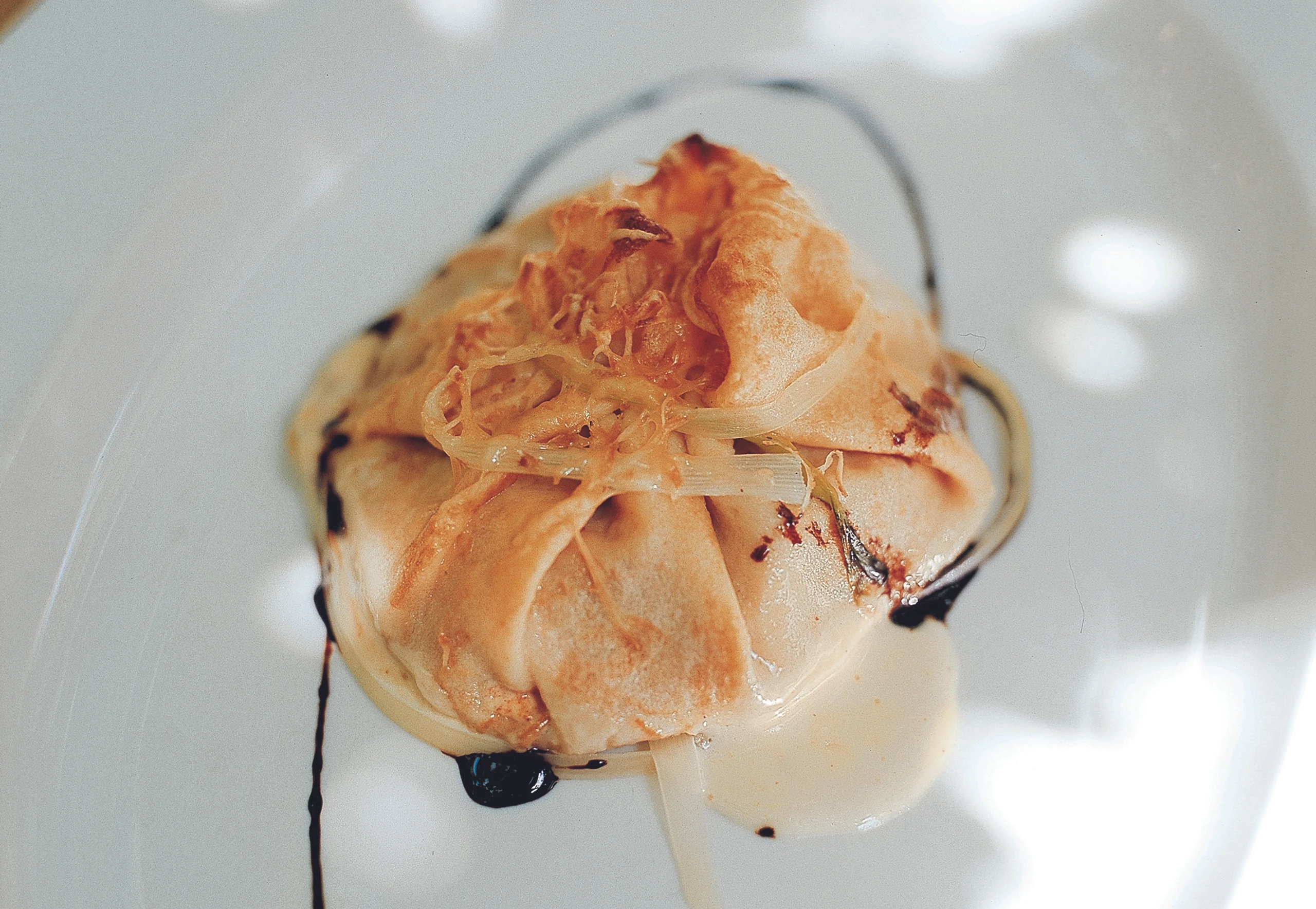 Für die Fülle Kürbis in kleine Würfel schneiden und in Olivenöl anschwitzen. Rosmarinzweig dazugeben, zudecken und bei mittlerer Hitze weich dünsten, bis die Flüssigkeit vollständig verkocht ist. Butter zugeben, Kürbis mit einem Stabmixer fein pürieren und mit Salz abschmecken.