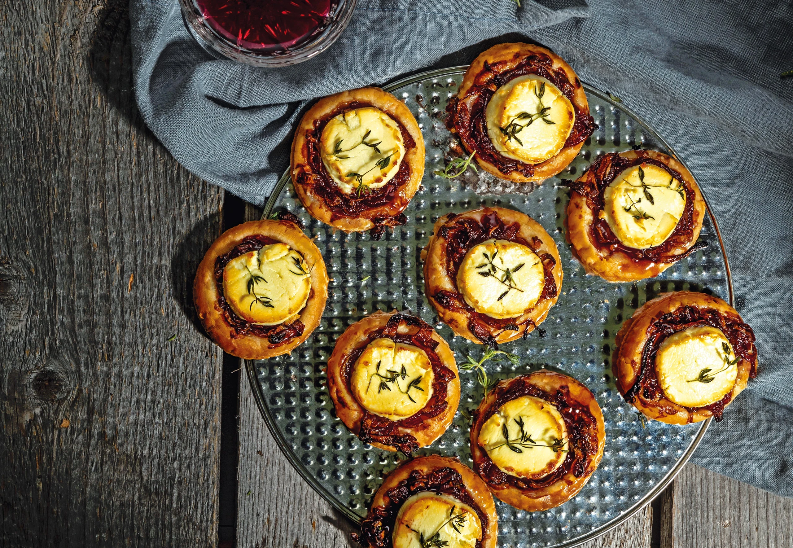 Gratinierte Tartelettes mit Rotweinzwiebeln