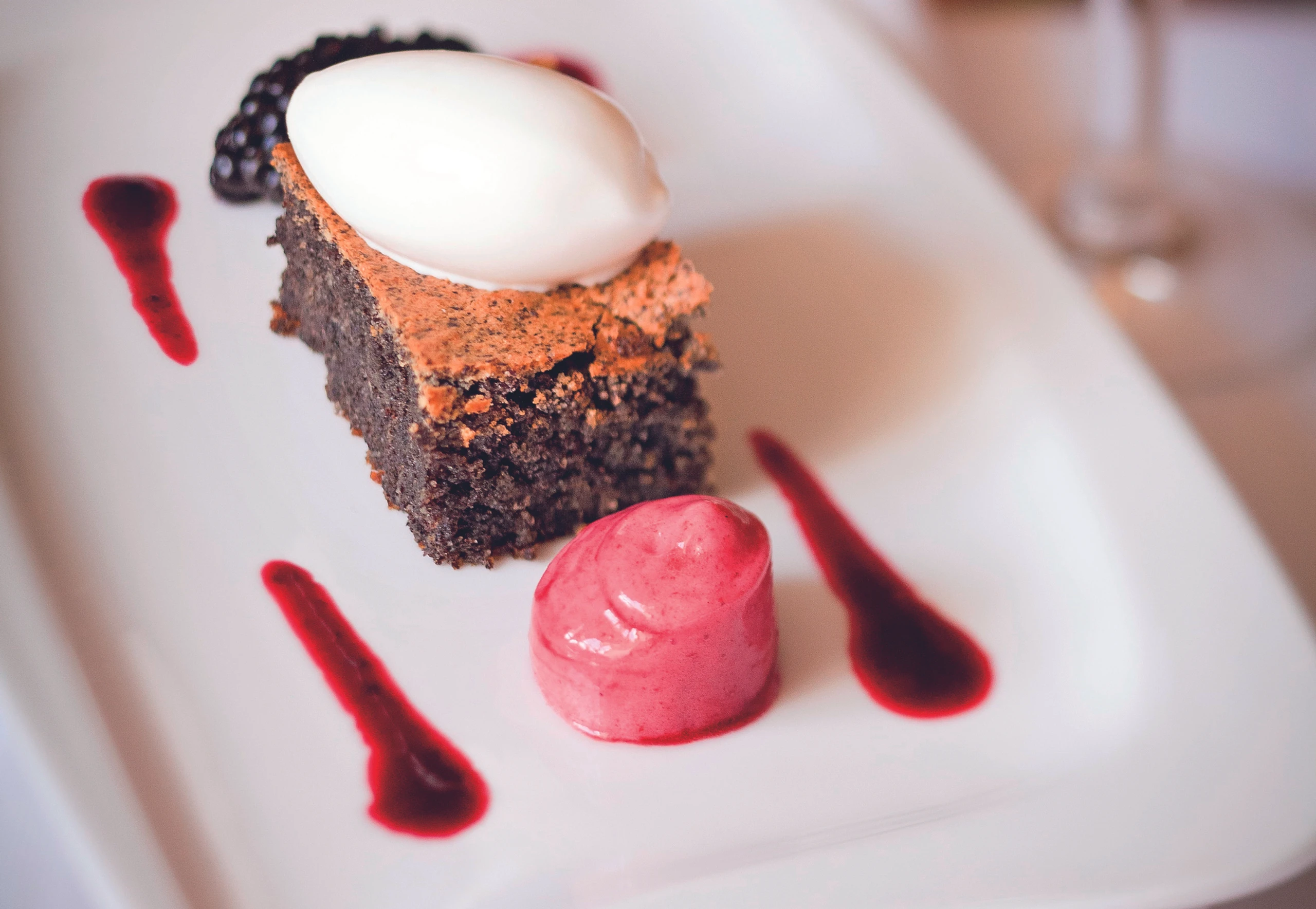 Graumohn-Schokotarte mit Brombeer-Espuma