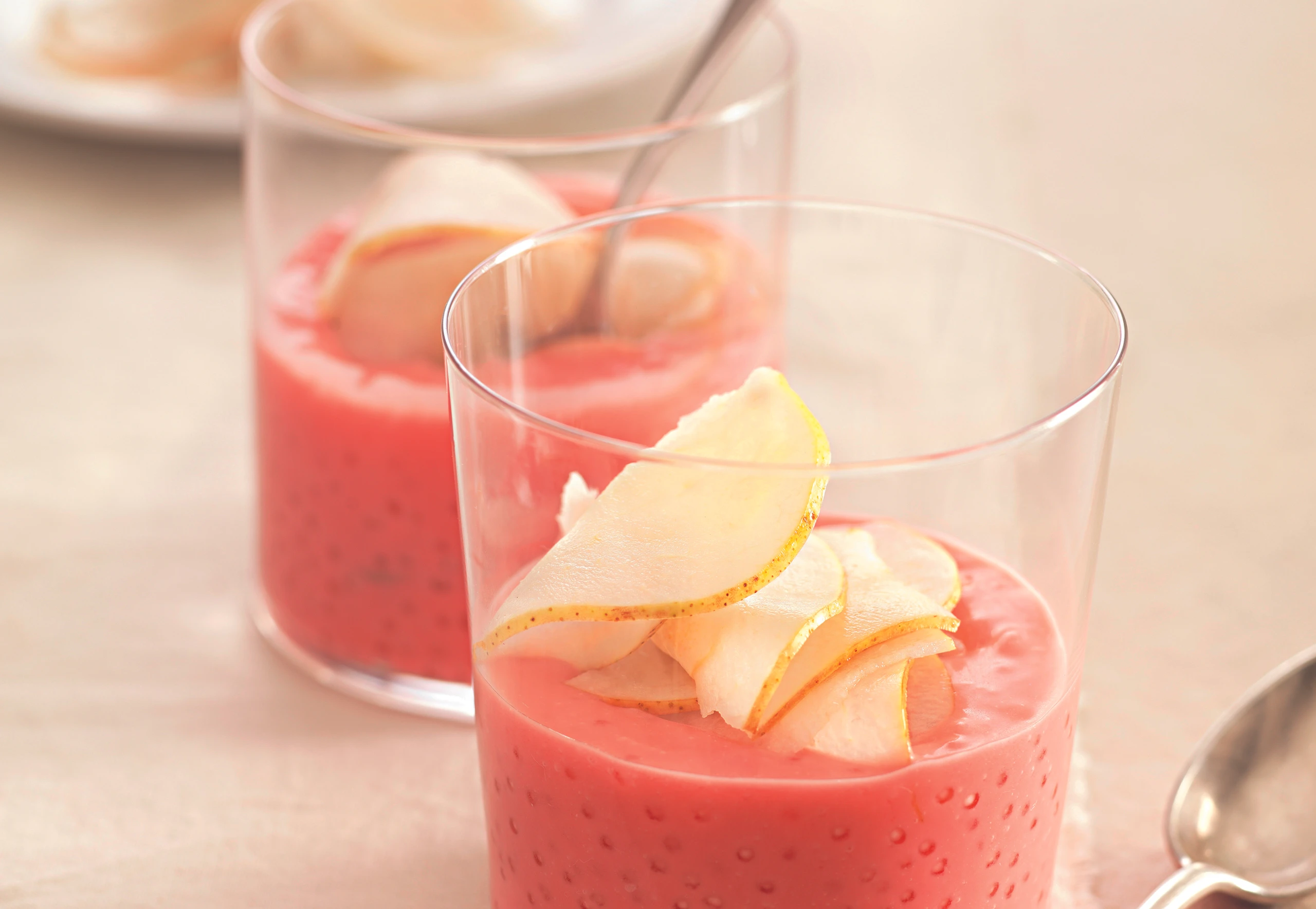Joghurt und Grenadinesirup unterrühren. Creme in Gläser füllen und zugedeckt für ca. 4 Stunden kühl stellen.