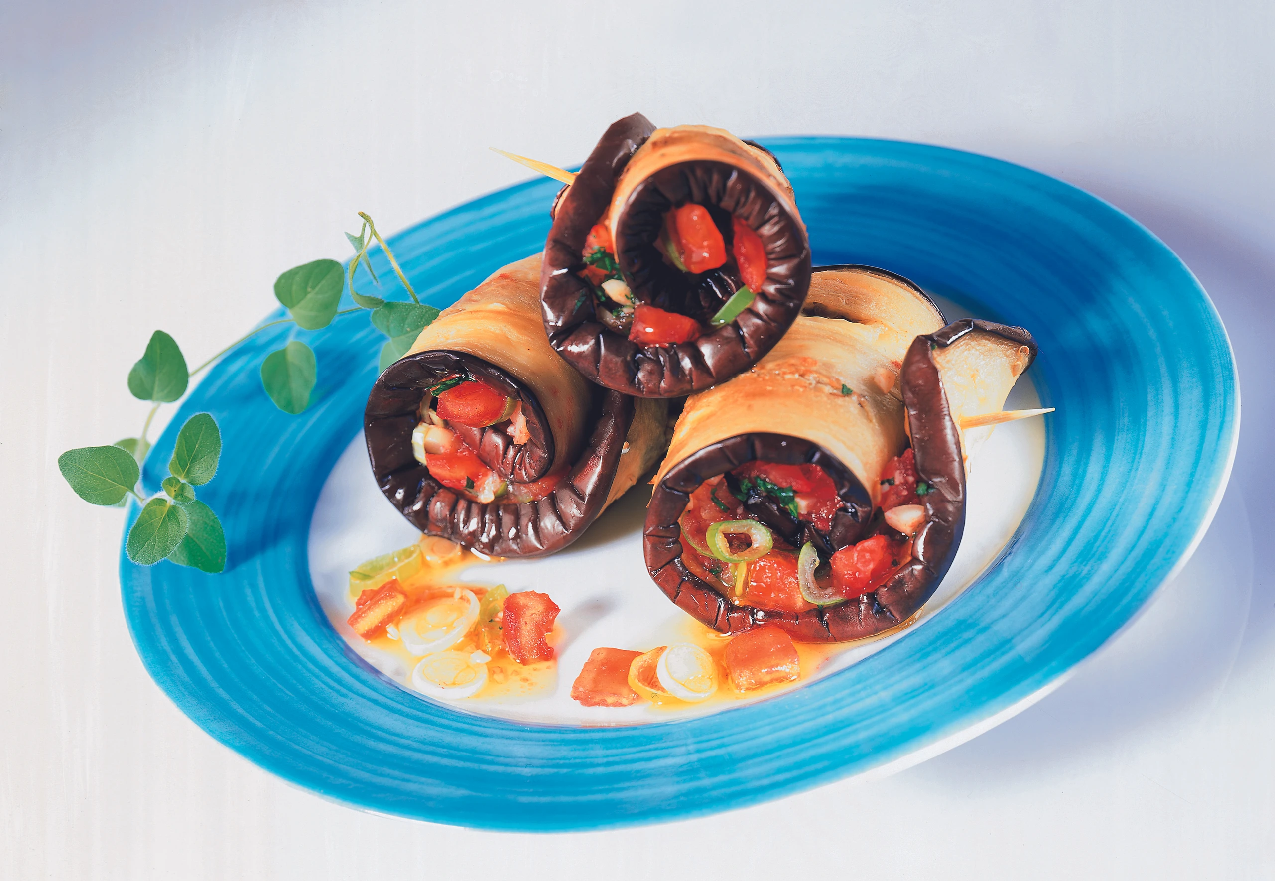 Griechische Melanzani-Röllchen mit Mandel-Kräuterfüllung