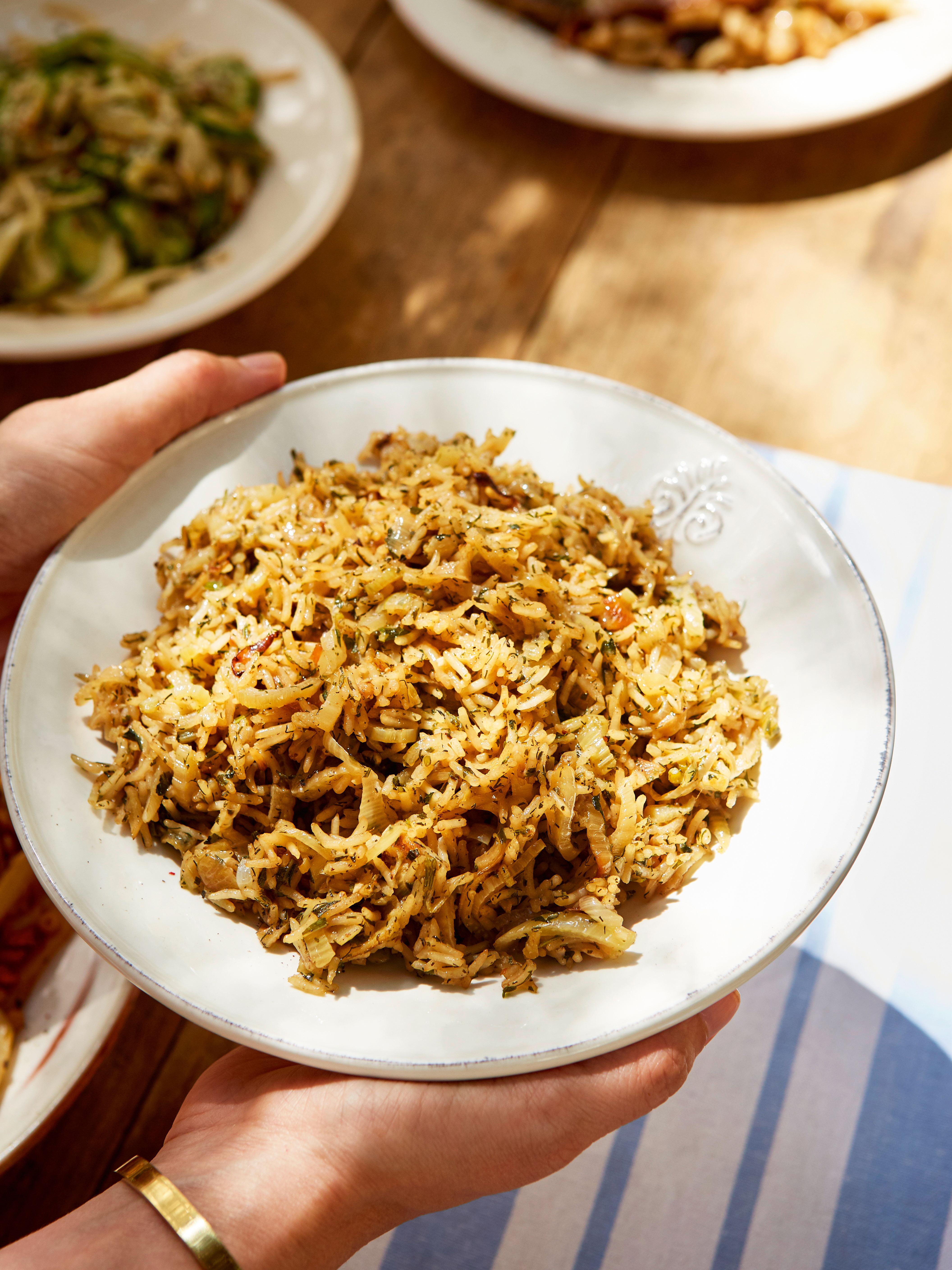 - Öl in einer Pfanne bei mittlerer Temperatur erhitzen. Zwiebeln zugeben, ca. 5 Minuten braten. Knoblauch zugeben, 1 Minuten mitbraten, dann Fenchel zugeben. Großzügig salzen. Braten, bis der Fenchel leicht gebräunt ist (ca. 10 Minuten). Reis und Kräuter zugeben. Mit Wasser aufgießen. Zum Kochen bringen, abdecken und Hitze reduzieren. Köcheln, bis der Reis gar ist und die Flüssigkeit aufgenommen wurde (Packungsanleitung beachten).