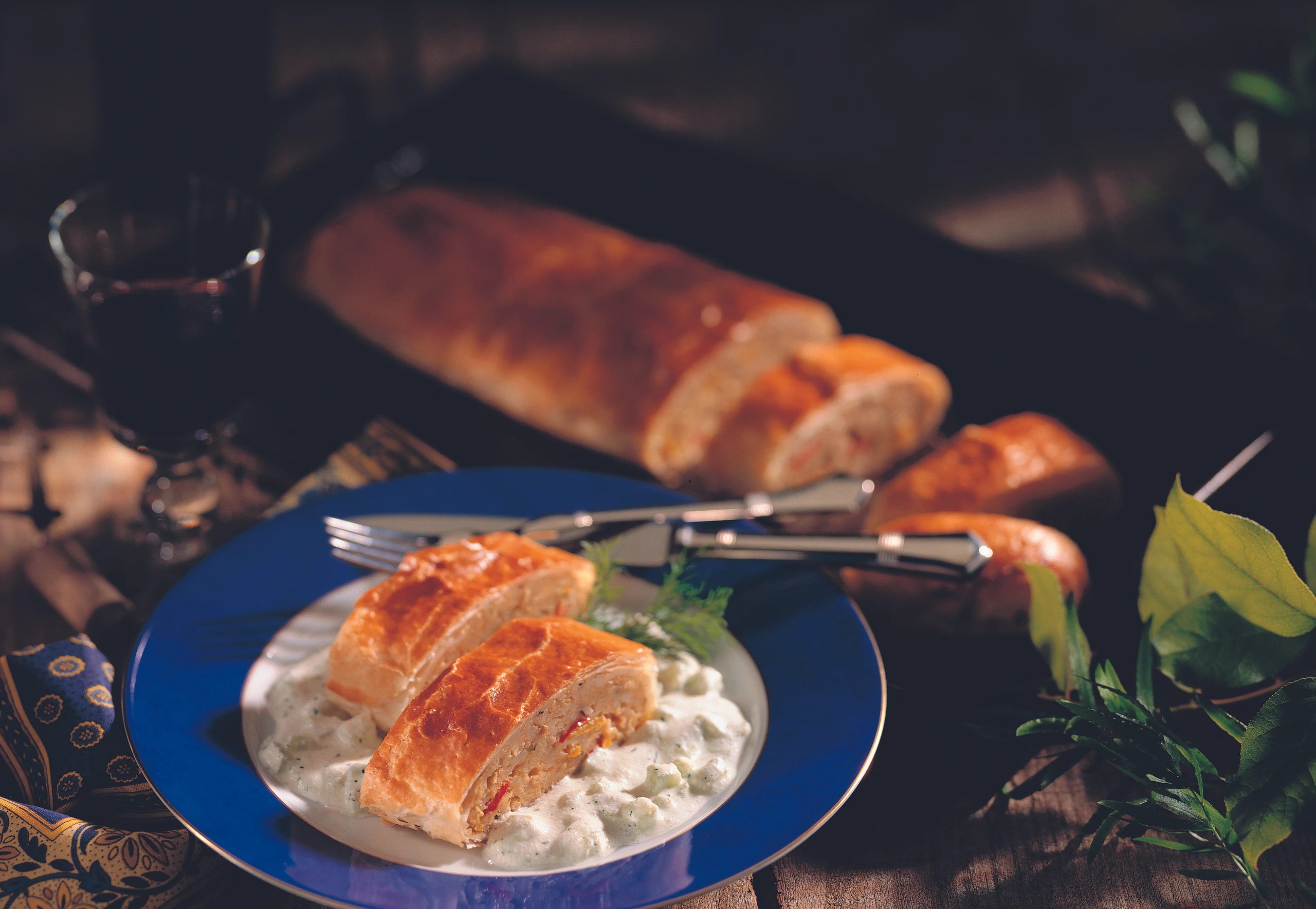 Griechischer Gemüsestrudel auf Gurken-Dillsauce