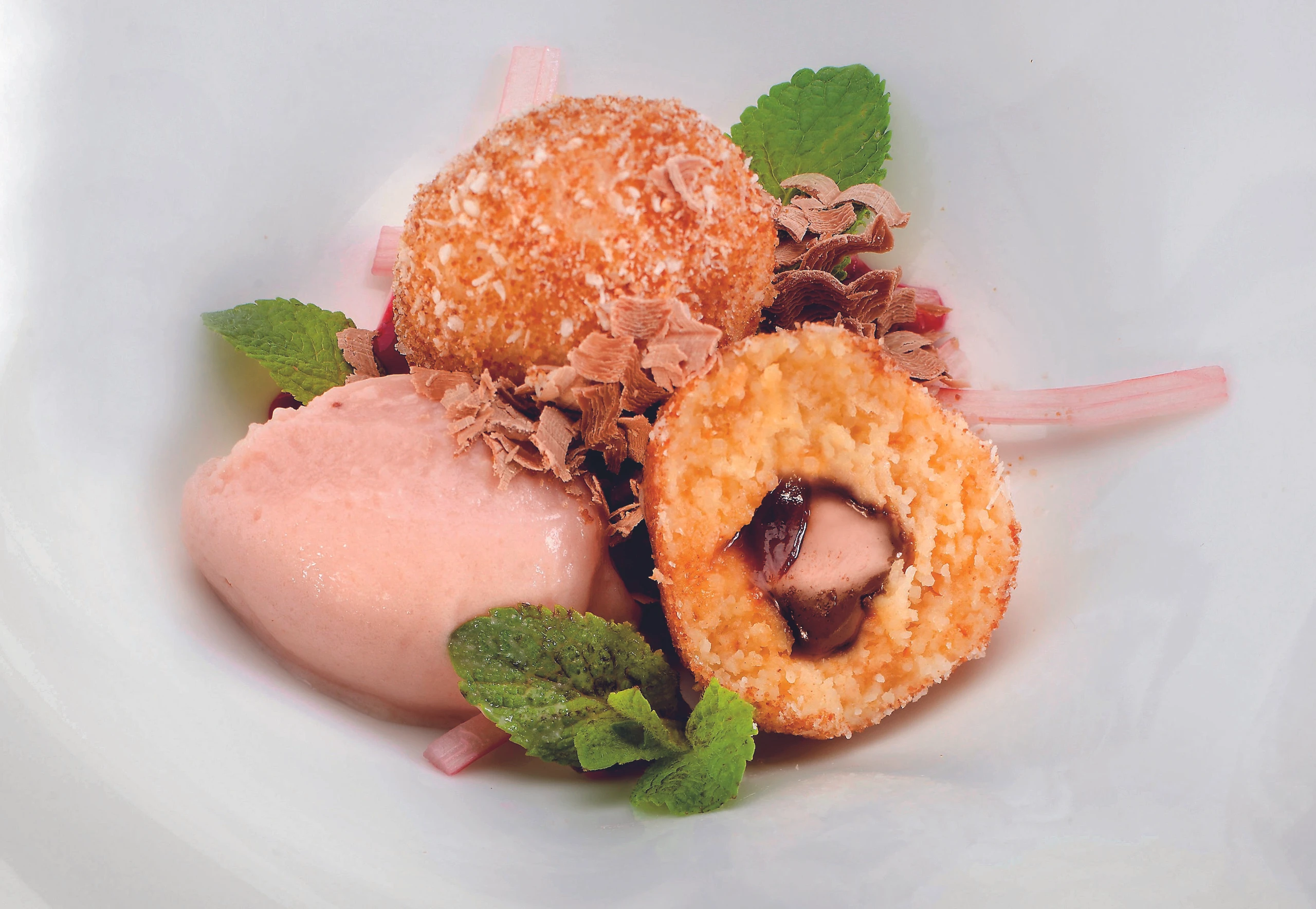Grieß-Nougatknödel mit Rhabarbermousse