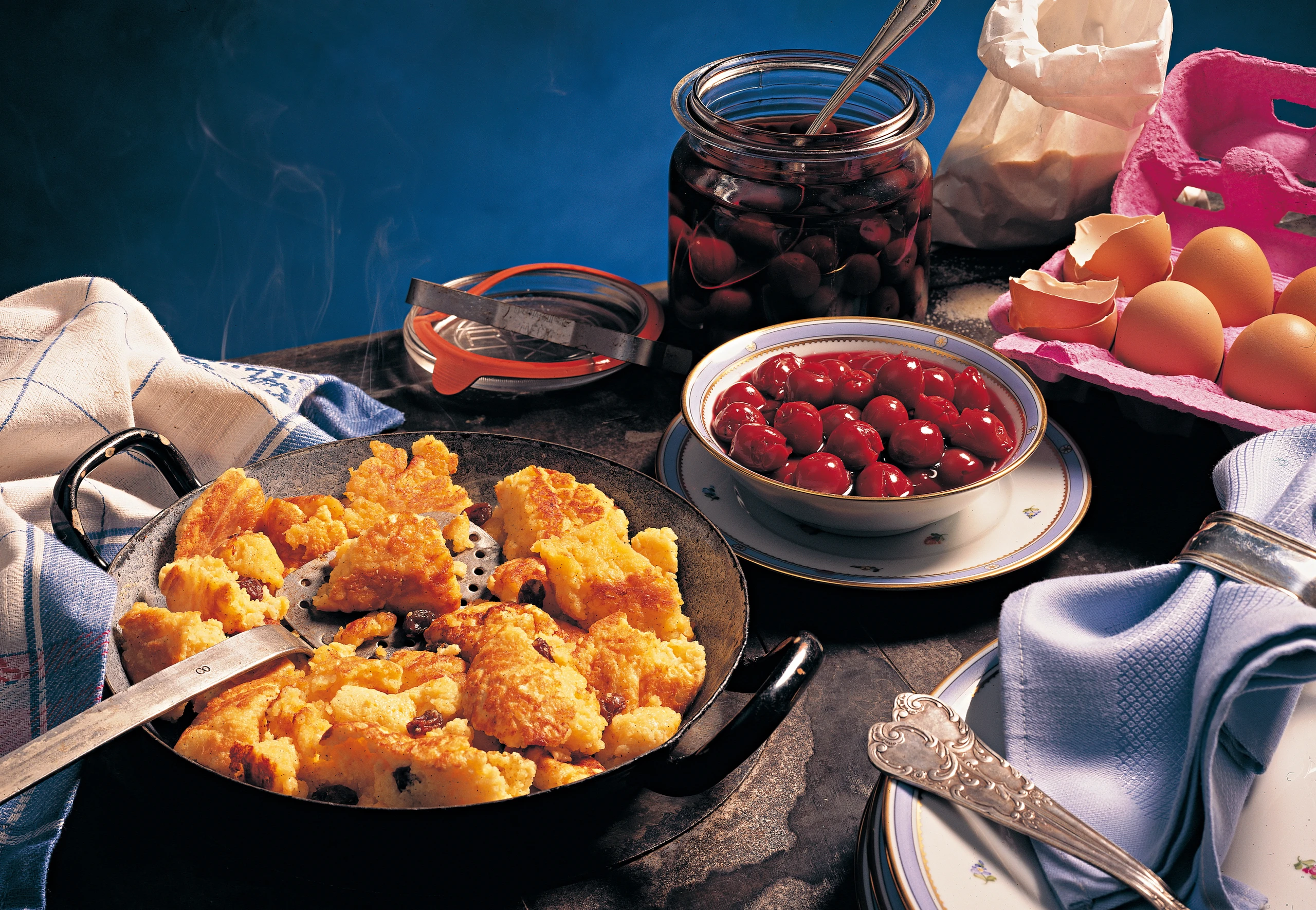 - Schmarren zerpflücken, auf Tellern anrichten und mit Staubzucker bestreut servieren. Dazu paßt z. B. Kirschenkompott.