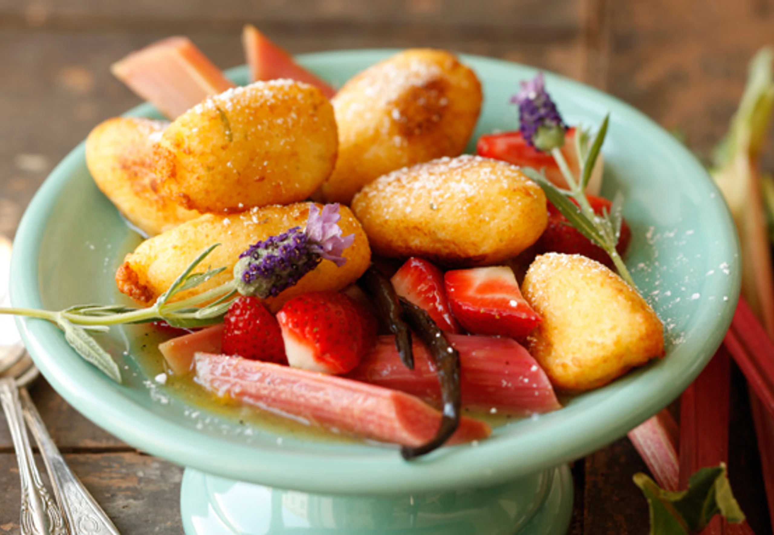 Grießnockerl auf Rhabarber