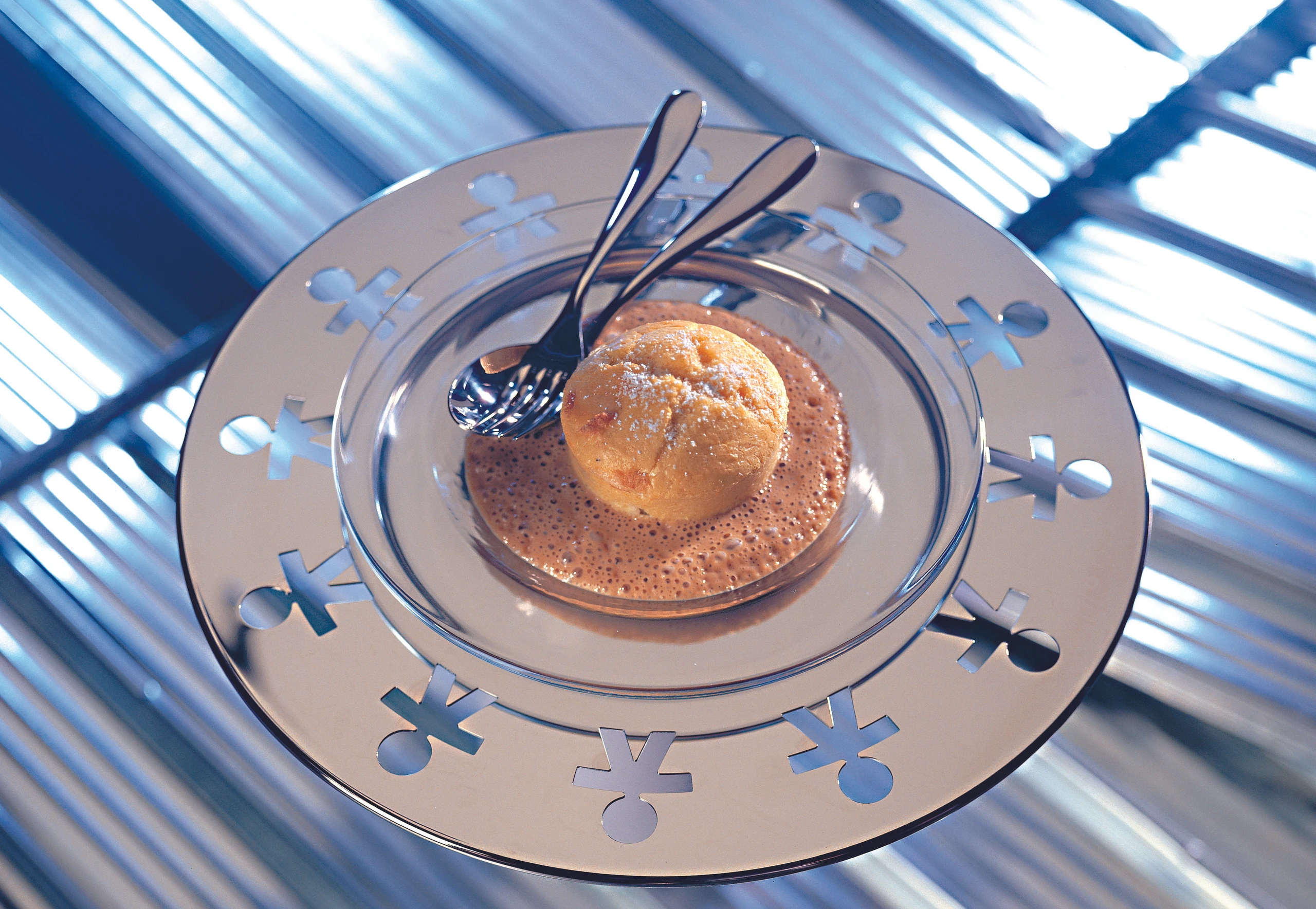 Die Aufläufe im vorgeheizten Rohr (unterste Schiene / Gitterrost) 20–25 Minuten garen. Förmchen aus dem Rohr nehmen, Puddings auf Teller stürzen und mit der Sauce anrichten.