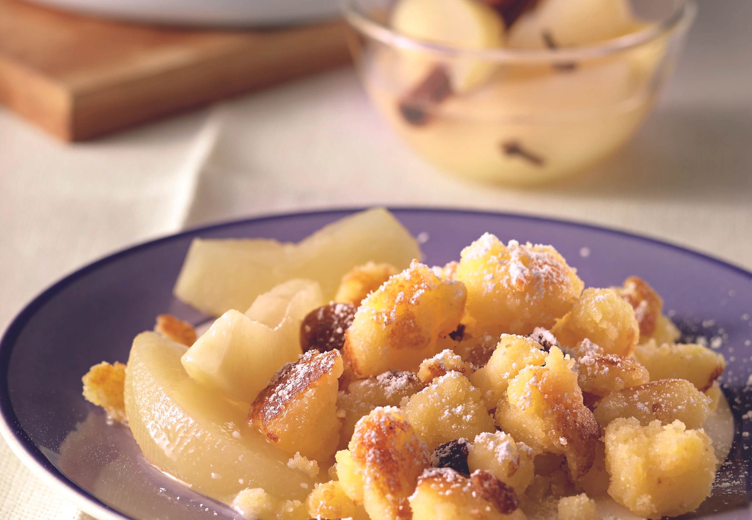 Schmarren anrichten mit Staubzucker und wenig Zimt bestreuen und mit dem Apfelkompott servieren.