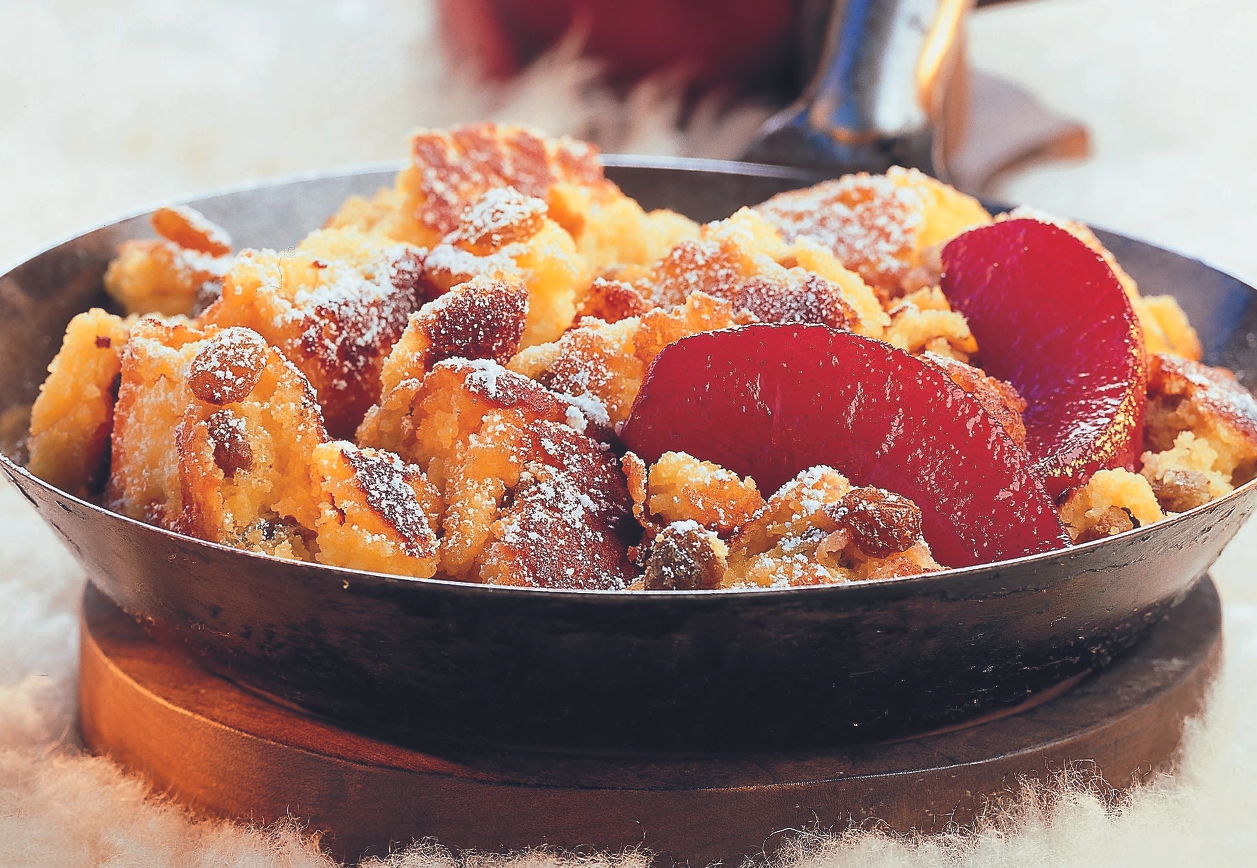 Grießschmarren mit rotem Birnenkompott