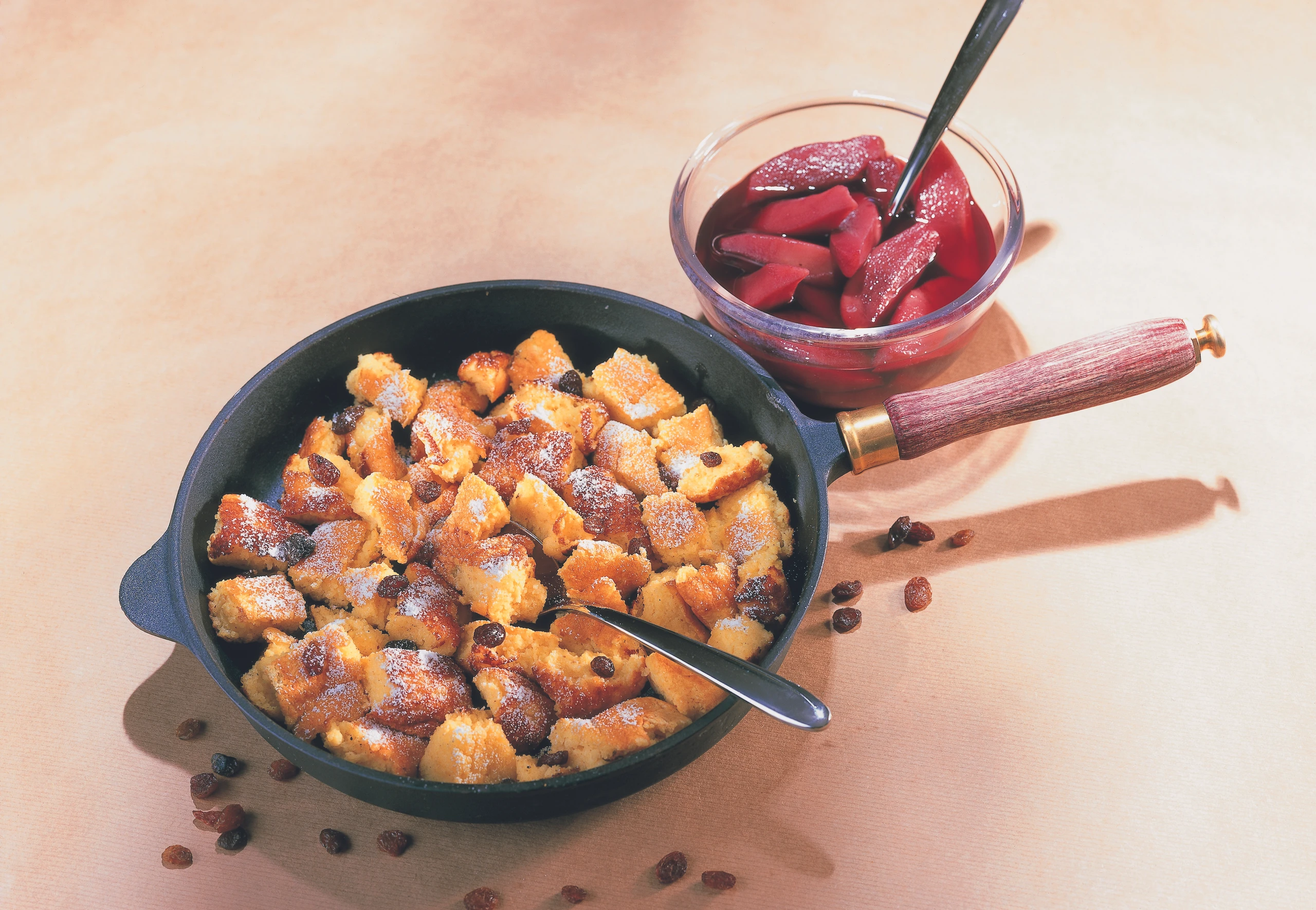Schmarrn mit zwei Gabeln zerpflücken, mit Staubzucker bestreuen und mit Kompott (siehe Rezept) servieren.