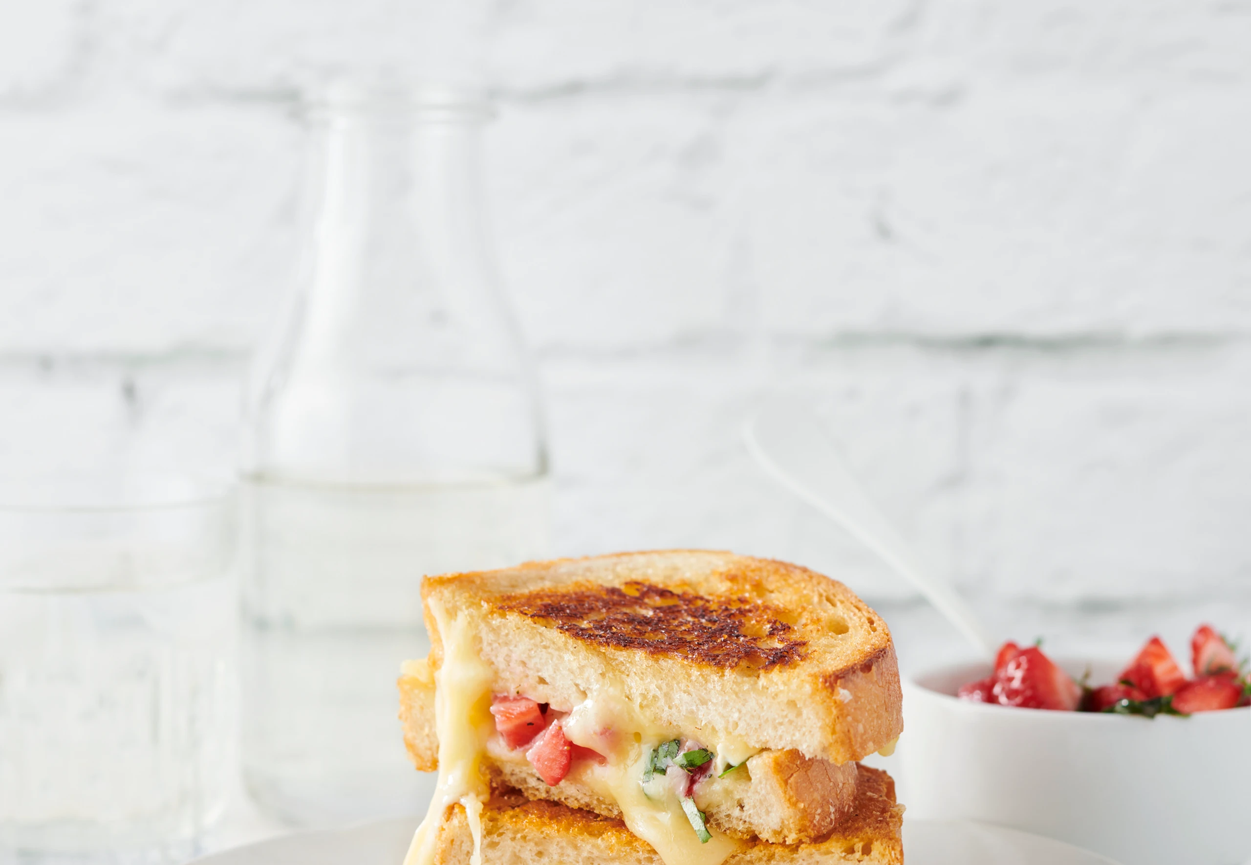 Sandwiches in eine trockene Pfanne legen, abdecken und bei mittlerer Hitze ca. 4 Minuten braun braten. Sandwiches wenden und weitere 4 Minuten braten. Herausnehmen und mit den restlichen Erdbeeren servieren.