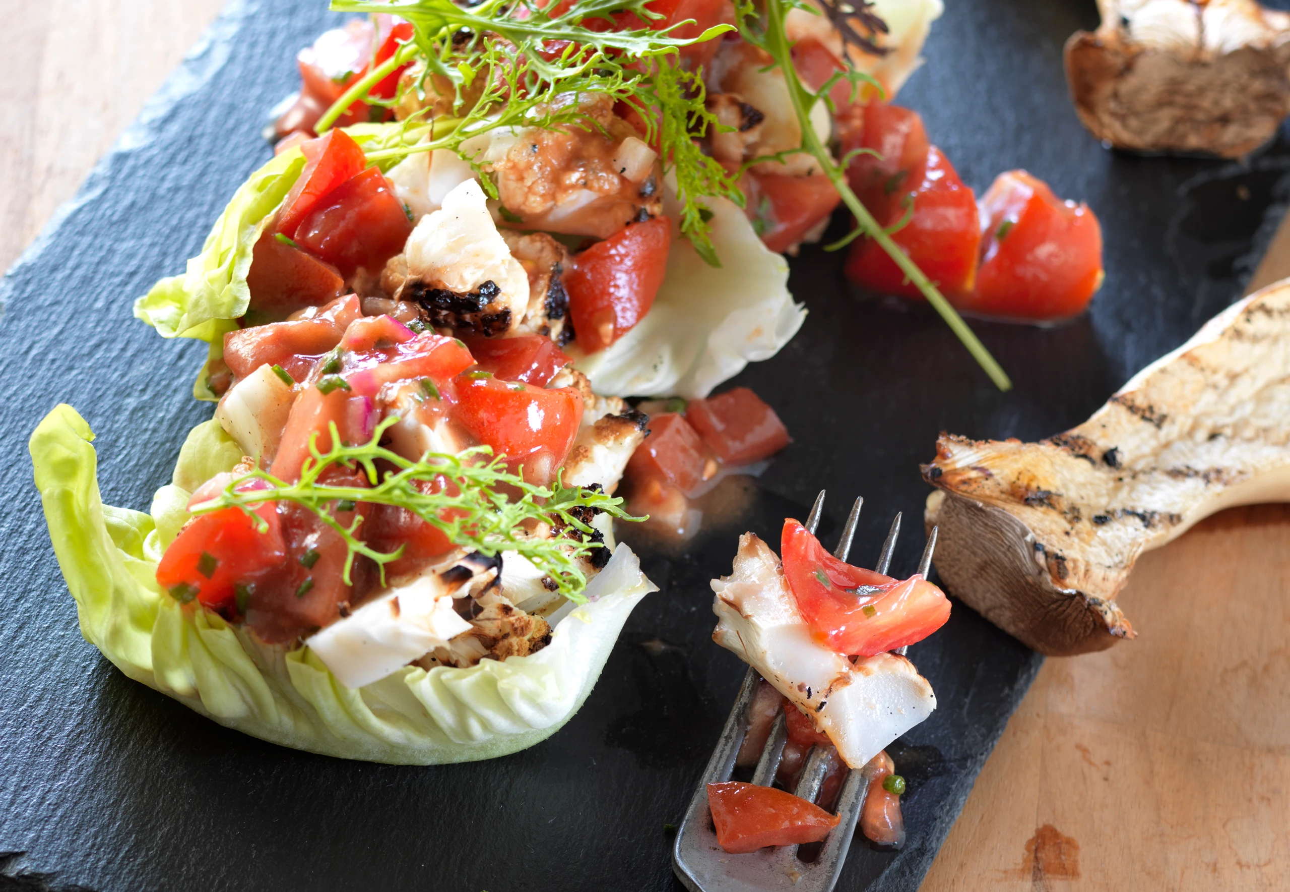 Grillkarfiol-Salat mit Paradeiser-Salsa