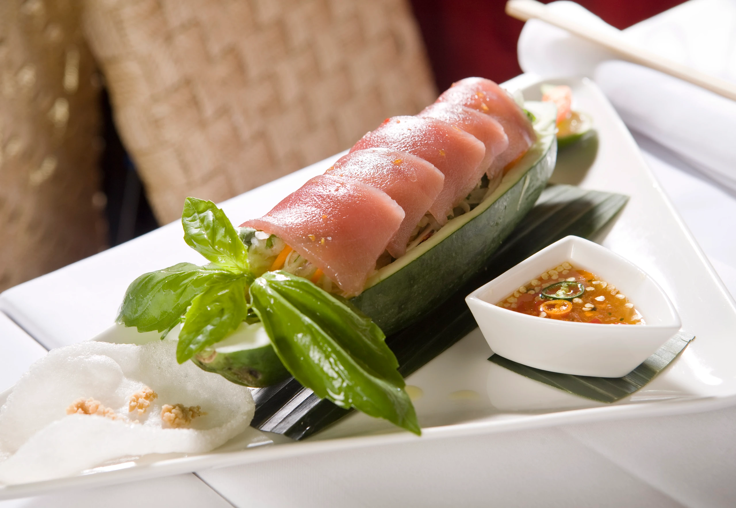 Grüner Papayasalat mit Thunfisch-Sashimi
