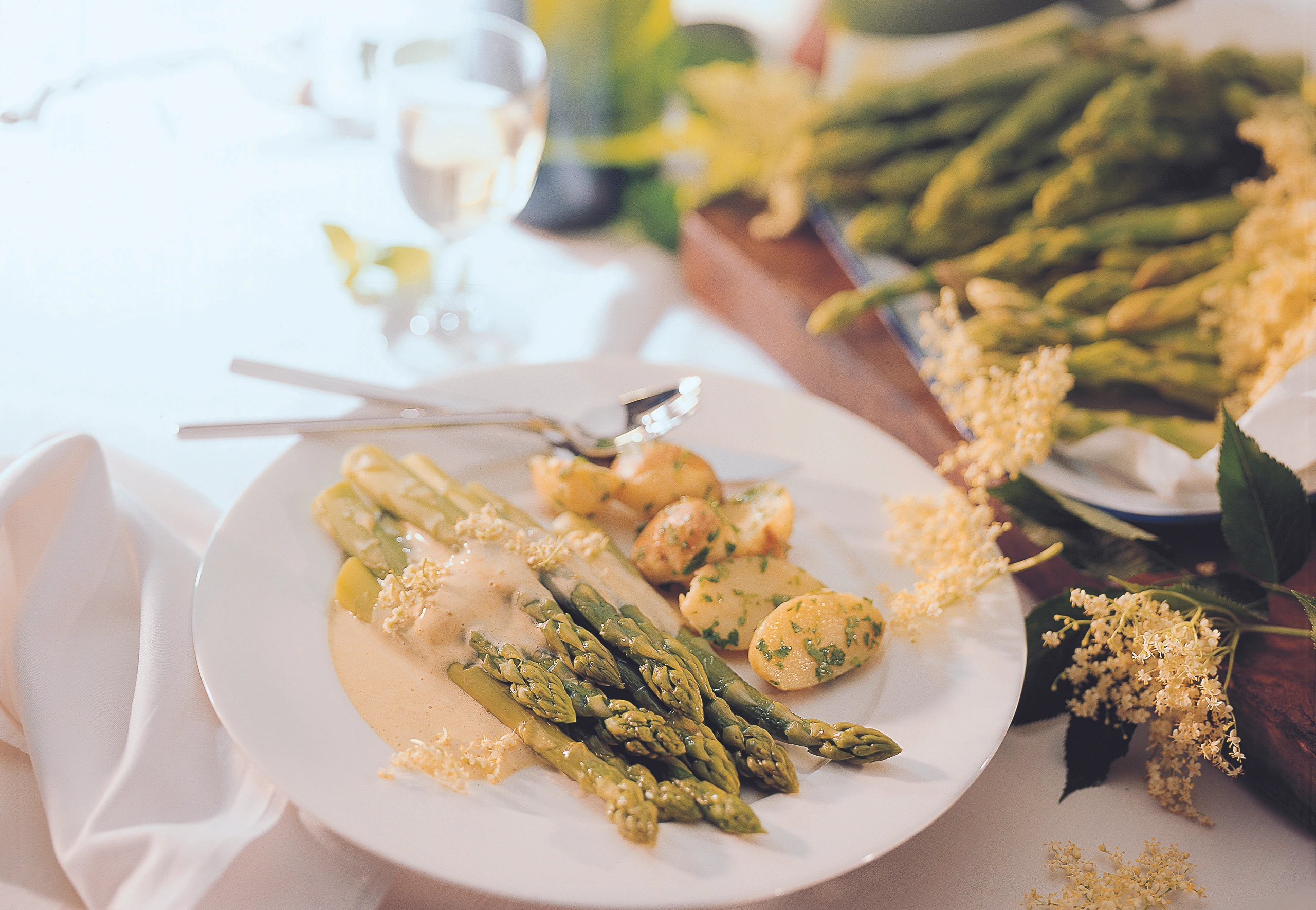 Grüner Spargel mit Holunderblüten-Sabayon